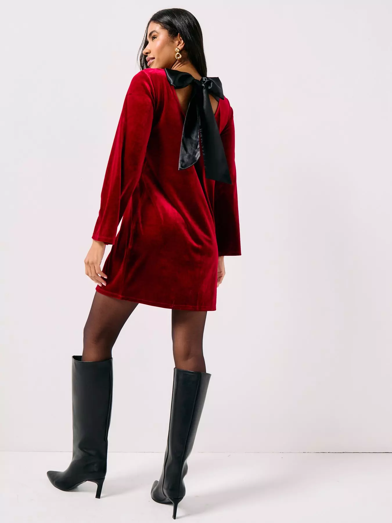 - Long Sleeve Velvet Bow Mini Dress by JDY