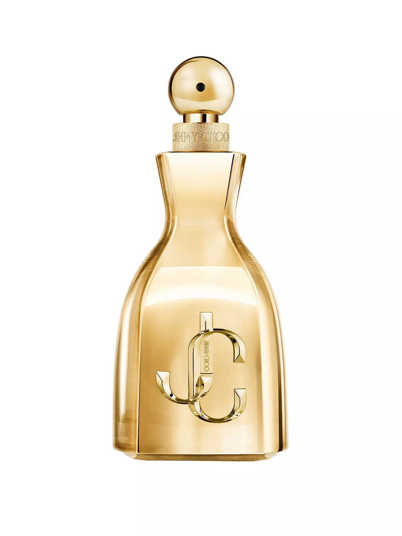 The sculptural-shaped bottle, crafted from captivating translucent gold metallic glass, is embellished with the distinctive JC monogram. Its gold spray cap and accent ring, intricately hammered with the iconic Jimmy Choo signature, add the finishing touches to the bottle's design. This exquisite bottle is complemented by sparkling gold outer packaging.