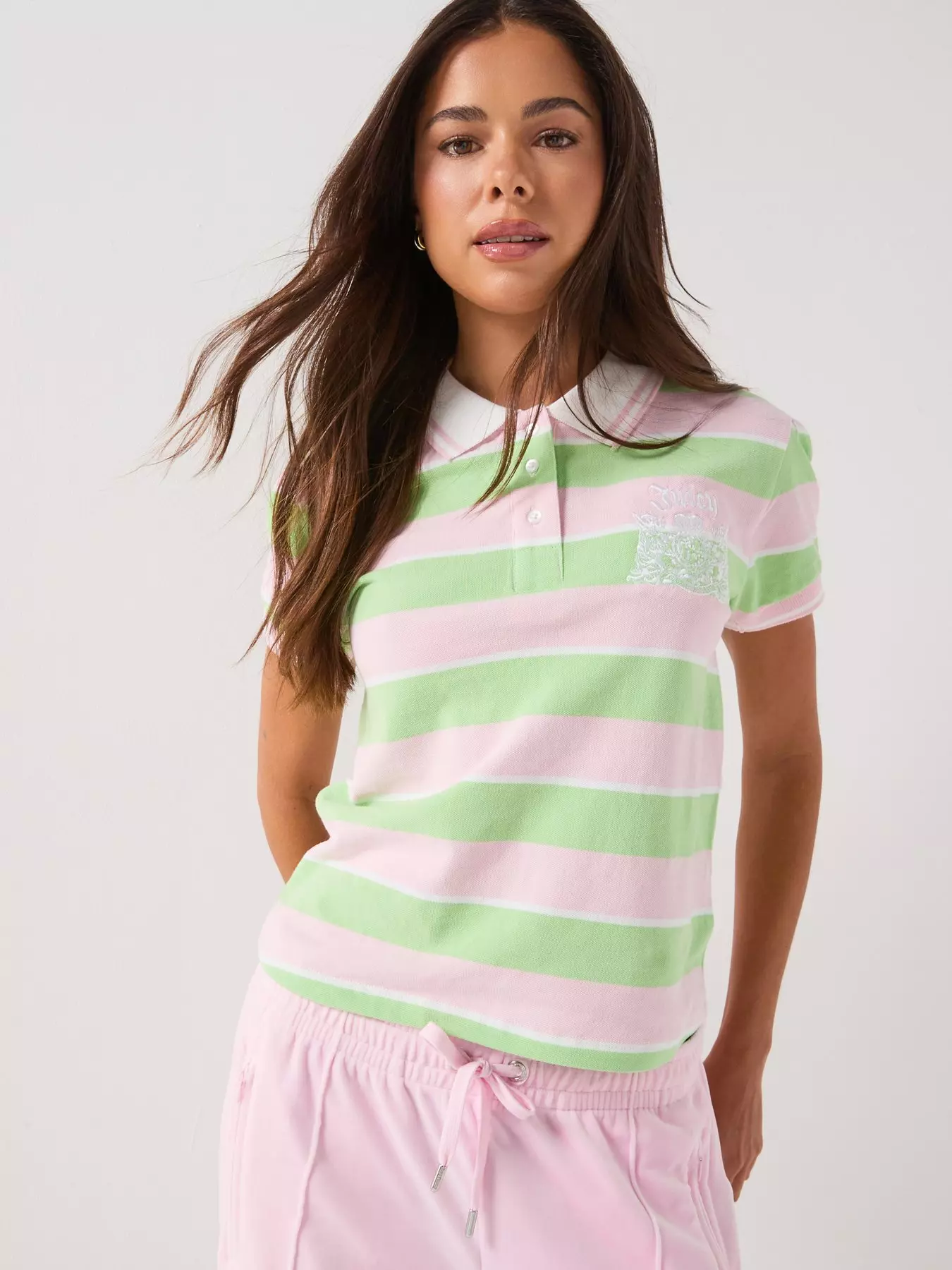 Juicy CouturePuff Sleeve Polo Top - Green/Pink