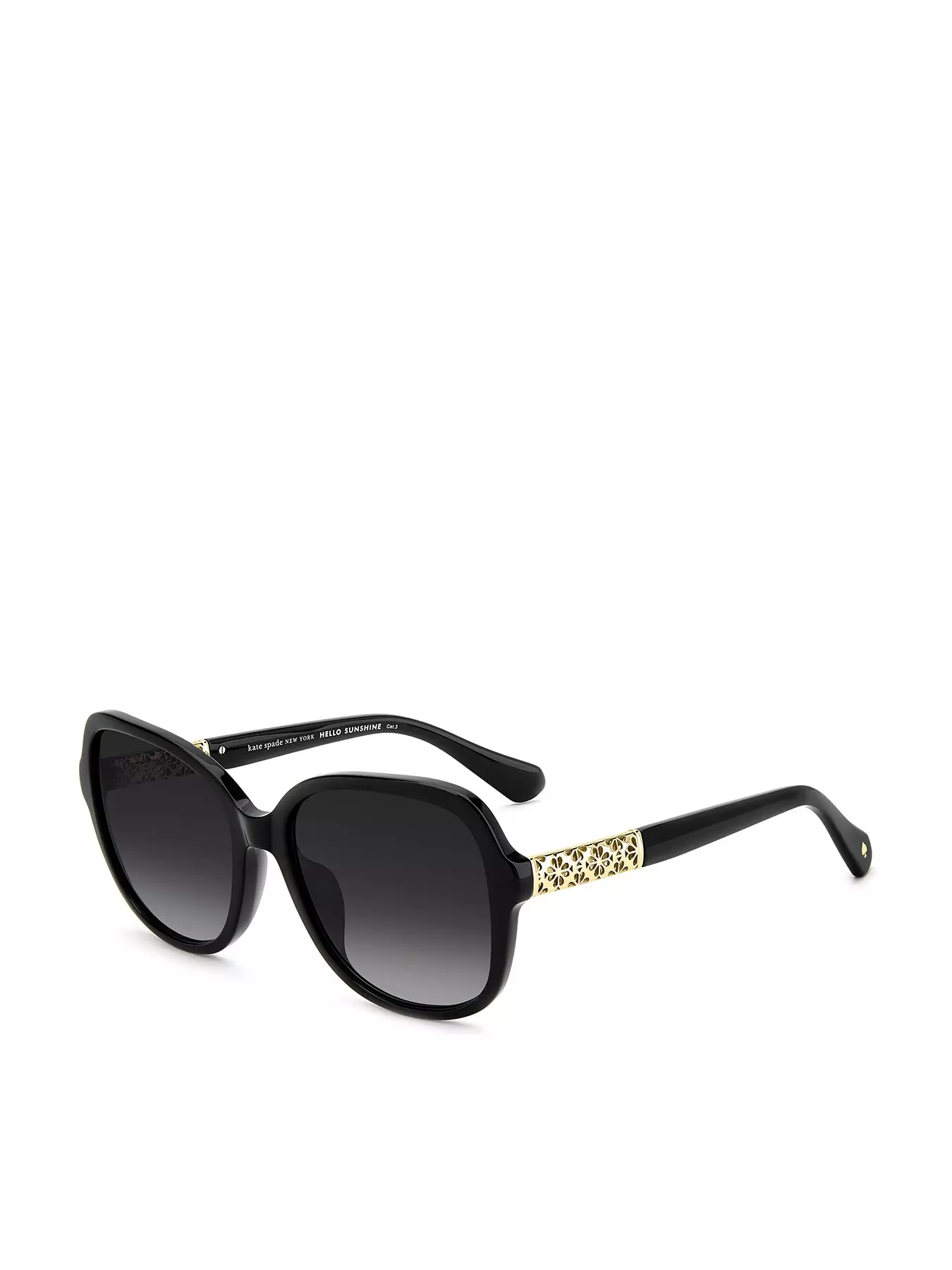 With these sunglasses, KATE SPADE brings a unique twist to a timeless silhouette. Luminous laser-cut SPADE FLOWER detailing elevates the temples, which also feature the HELLO SUNSHINE inscription on the inside. This acetate style comes in different colors, including colorful havana. For added practicality, the frames can accommodate prescription sun lenses.- Material Content: ACETATE FRAMES