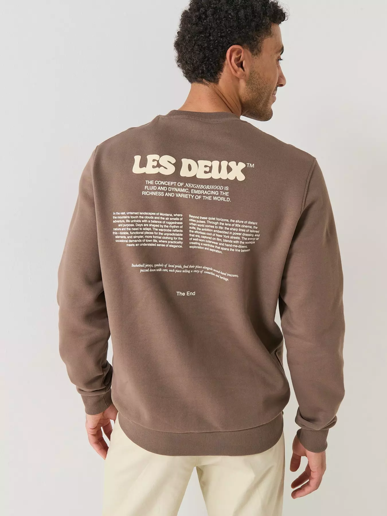 Les DeuxBen Dynamic Back Print Crew Sweat - Brown