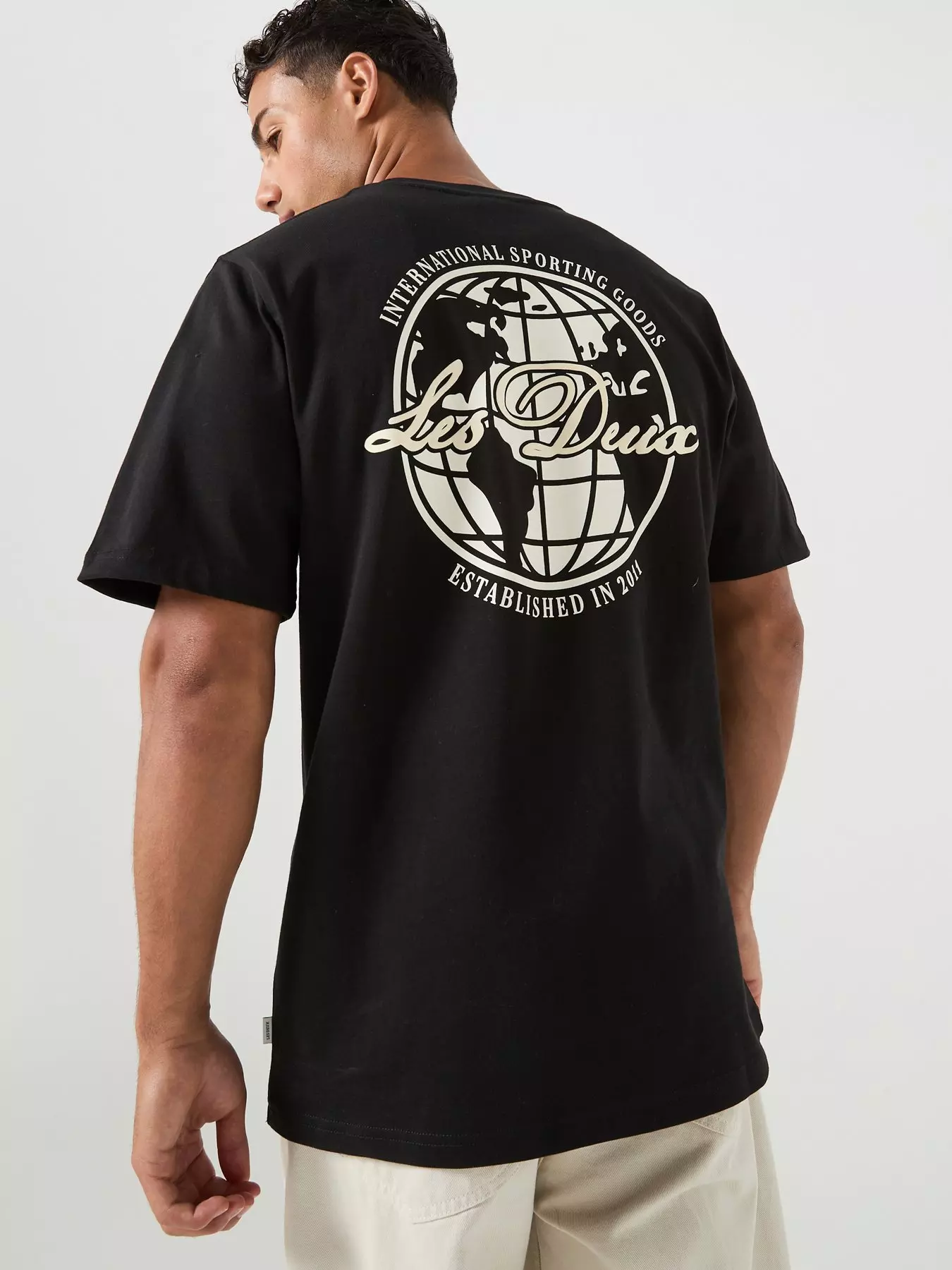 Les DeuxBen Globe Back Graphic Regular Fit T-Shirt - Black