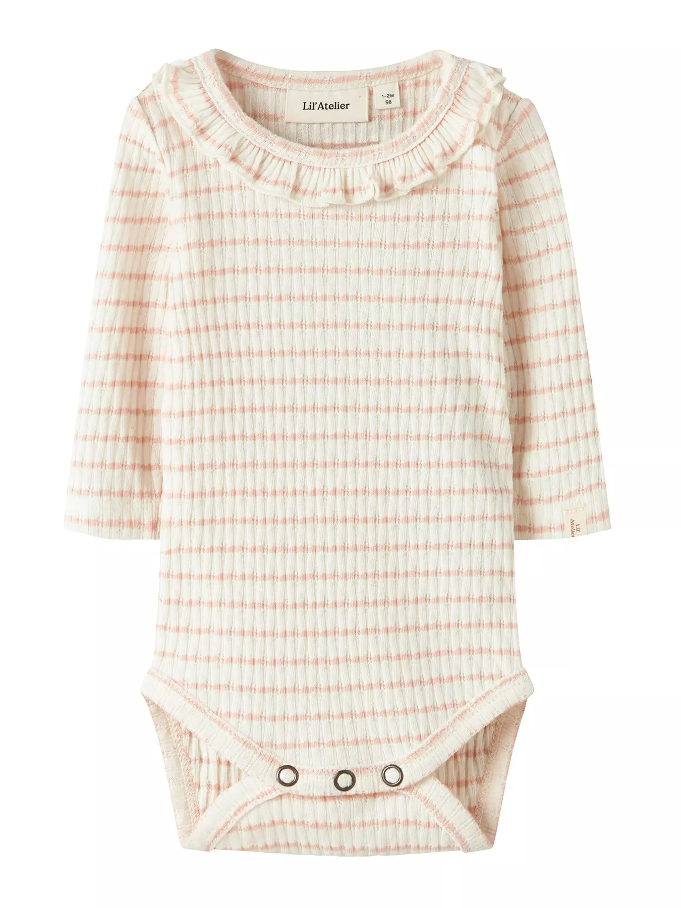 E.A.N: 5 7 1 5 7 3 0 3 3 6 2 1 7Lil Atelier Baby Girls Frill Striped Long Sleeve Bodysuit - Light Pink
