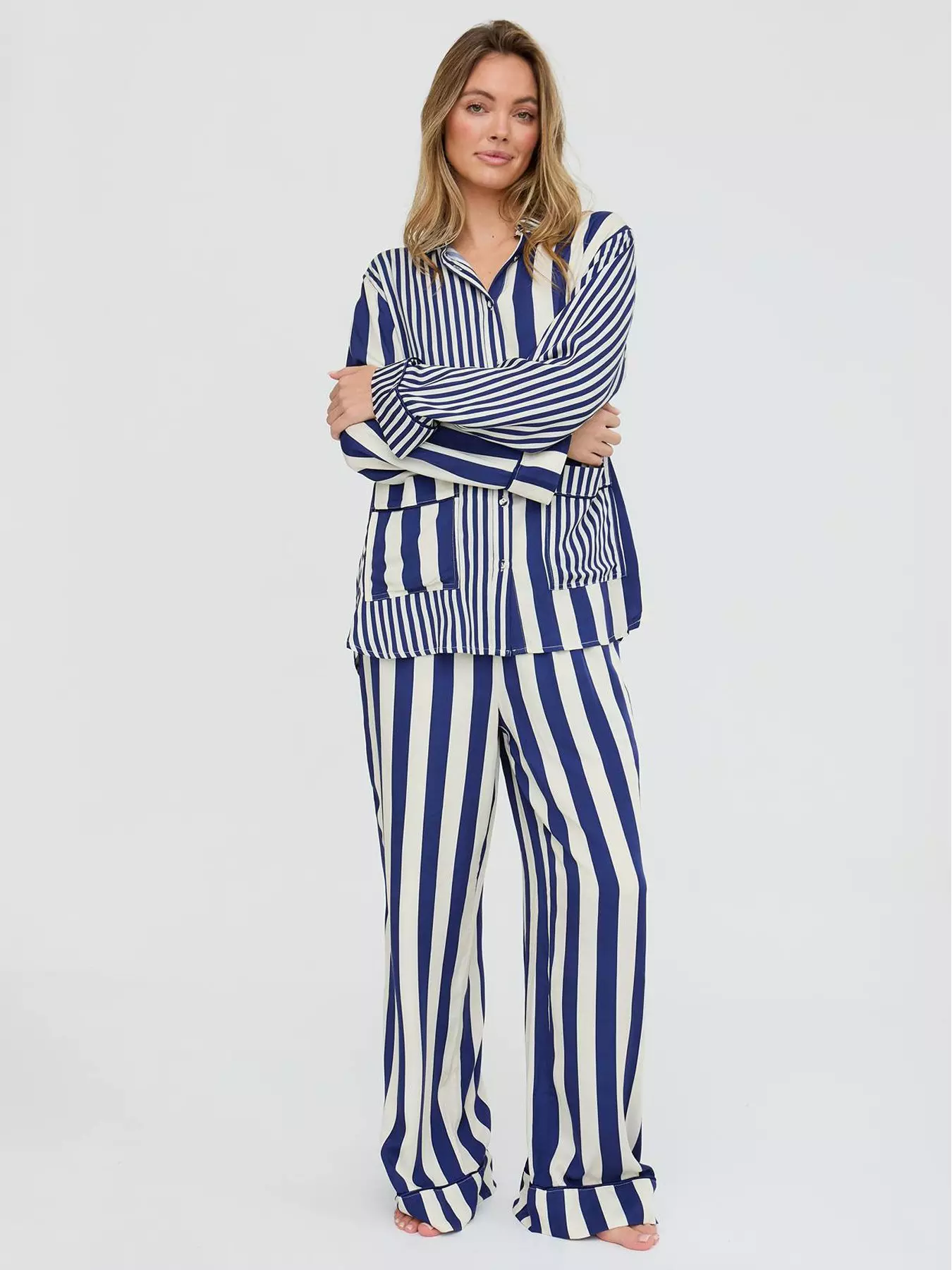 Lily & LionelEvie Mixed Stripe Printed Pyjama Set - Navy