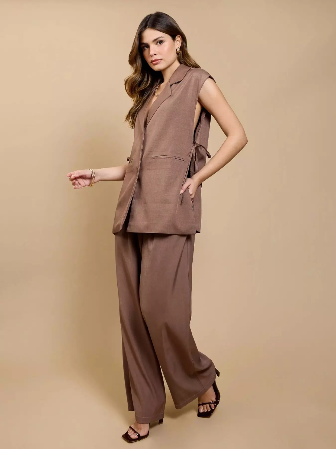 Little MistressWide Leg Trousers - Brown