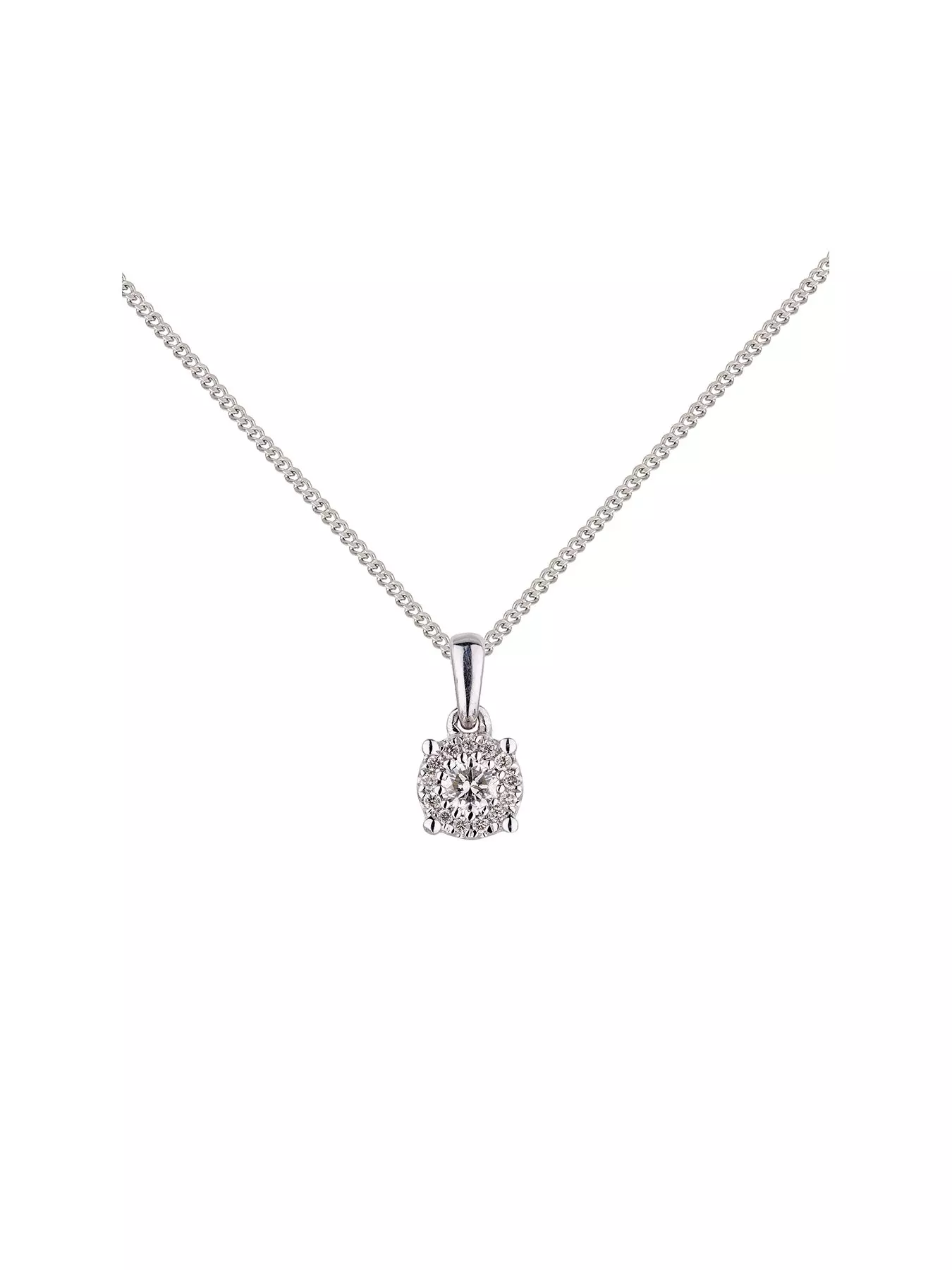 Beautiful half carat solitaire look diamond cluster pendant in 9K white gold, total carat weight 0.12Ct, perfect for everyday wear.- Depth: 5 MM