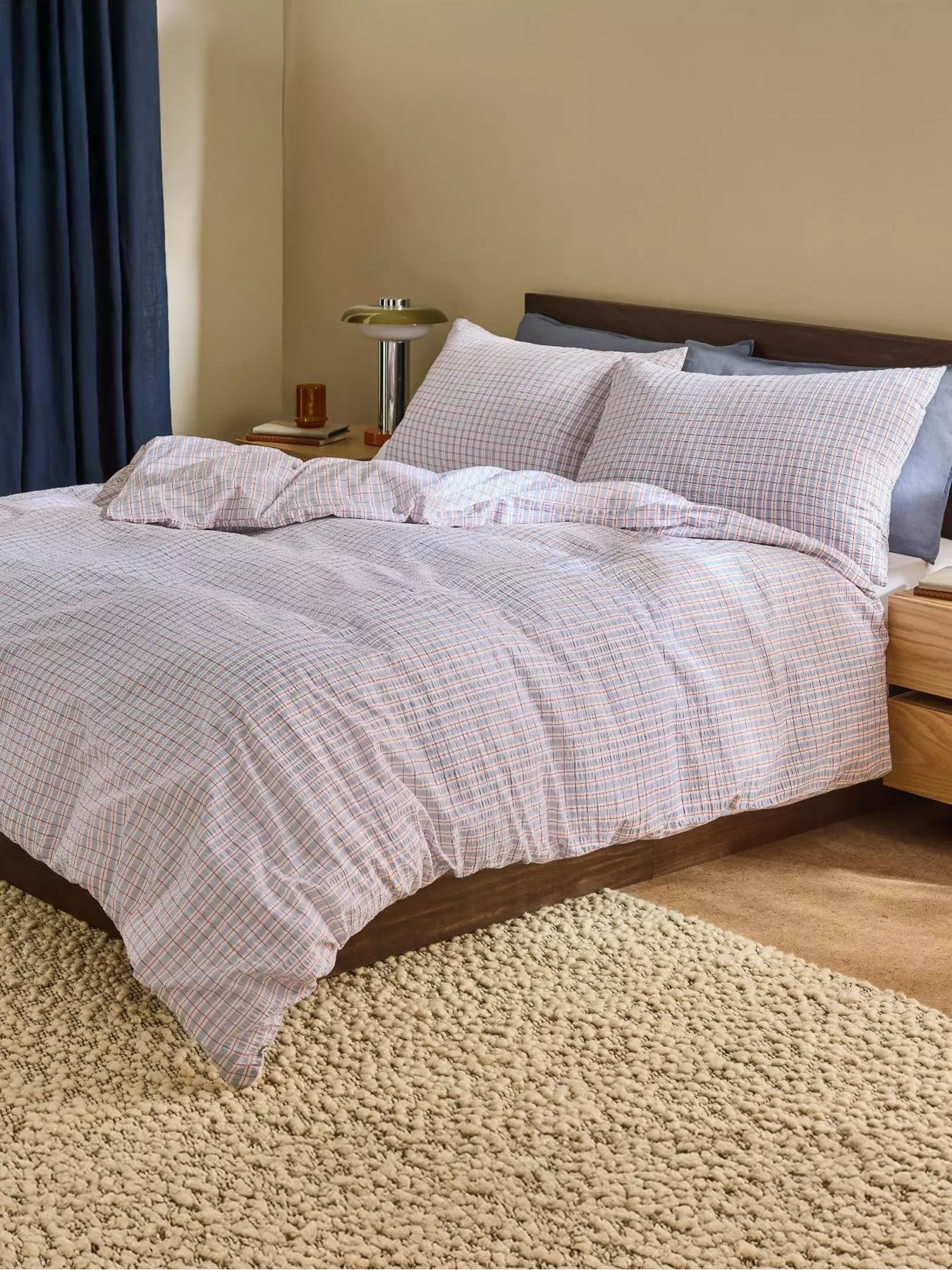 The Felix Seersucker Duvet Cover Set brings effortless style and comfort to your bedroom with its classic check pattern on textured seersucker cotton. Made from 100% cotton with a 144 thread count and printed design, this duvet set offers a relaxed, breathable feel that's perfect for year-round comfort. The charming check design works beautifully in both classic and modern spaces, while the soft seersucker texture adds a touch of laid-back sophistication.- Depth: 10 MM