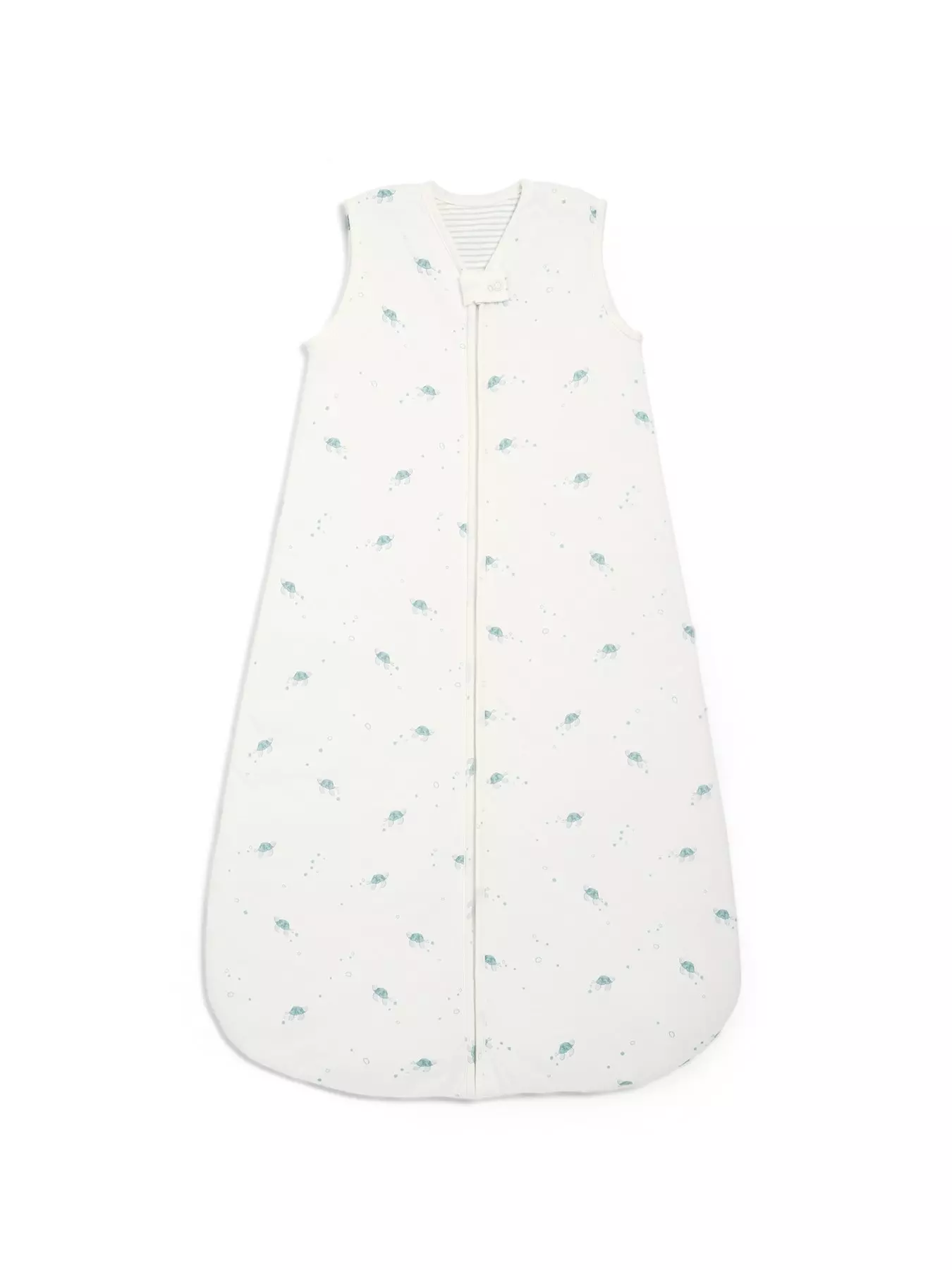 Mamas & Papas classic Dreampod, the perfect place to keep baby snug, safe and comfy as they sleep, featuring the adorable new Welcome to the World under-the-sea themed turtle character print. Ultra functional, it features a bottom opening zipper, handy for night changes with minimum disturbance, and shoulder fastenings for easy dressing/undressing.Poppers beneath arm openings allow for a snugger fit on younger babies. Supersoft, thanks to jersey cotton, and ultra cosy with a warm 2.5 tog, this Dreampod provides a relaxing, dreamy place for your little one to sleep, at night and during naps.