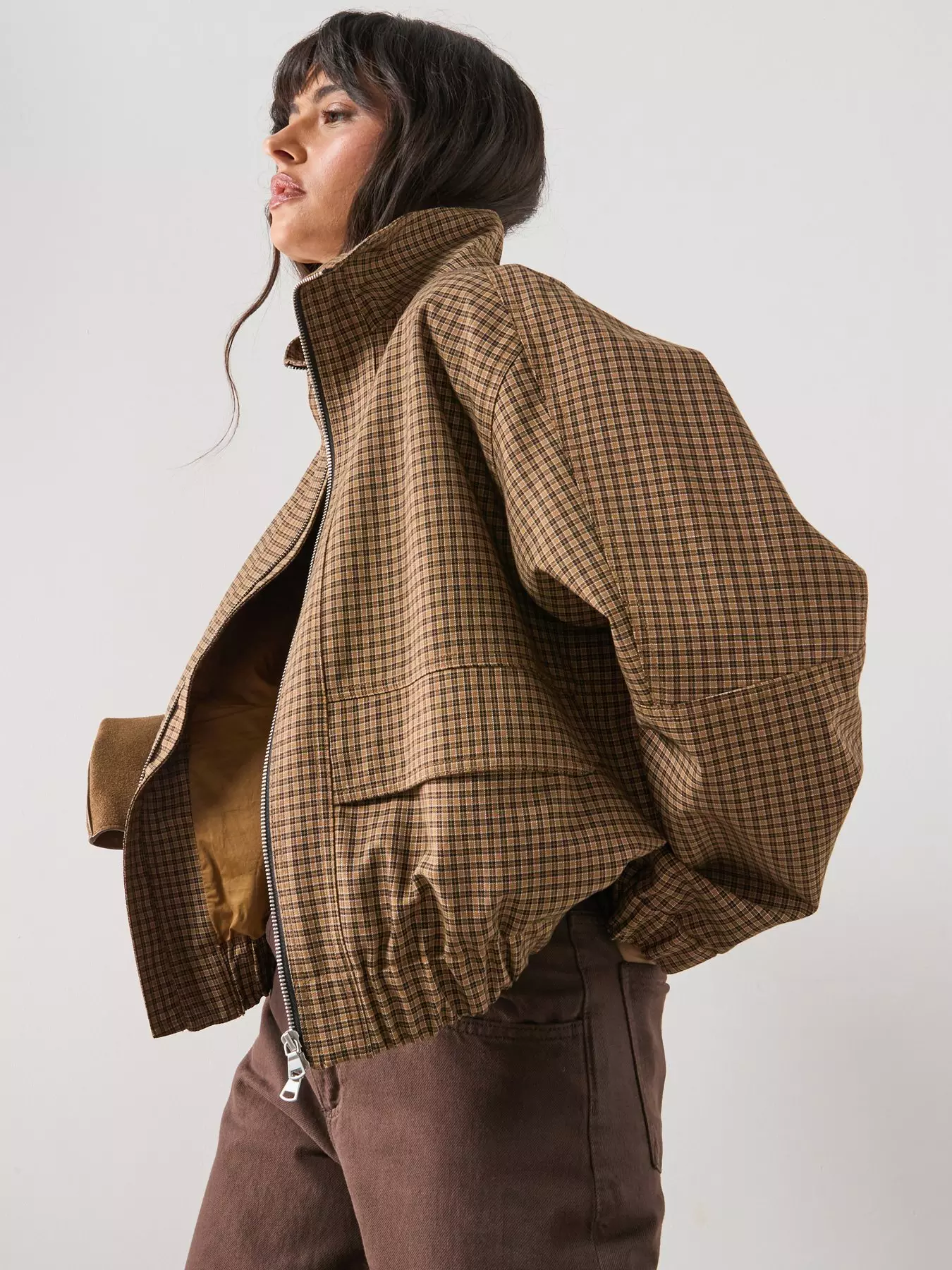 MangoHoundstooth High-Collar Jacket - Brown