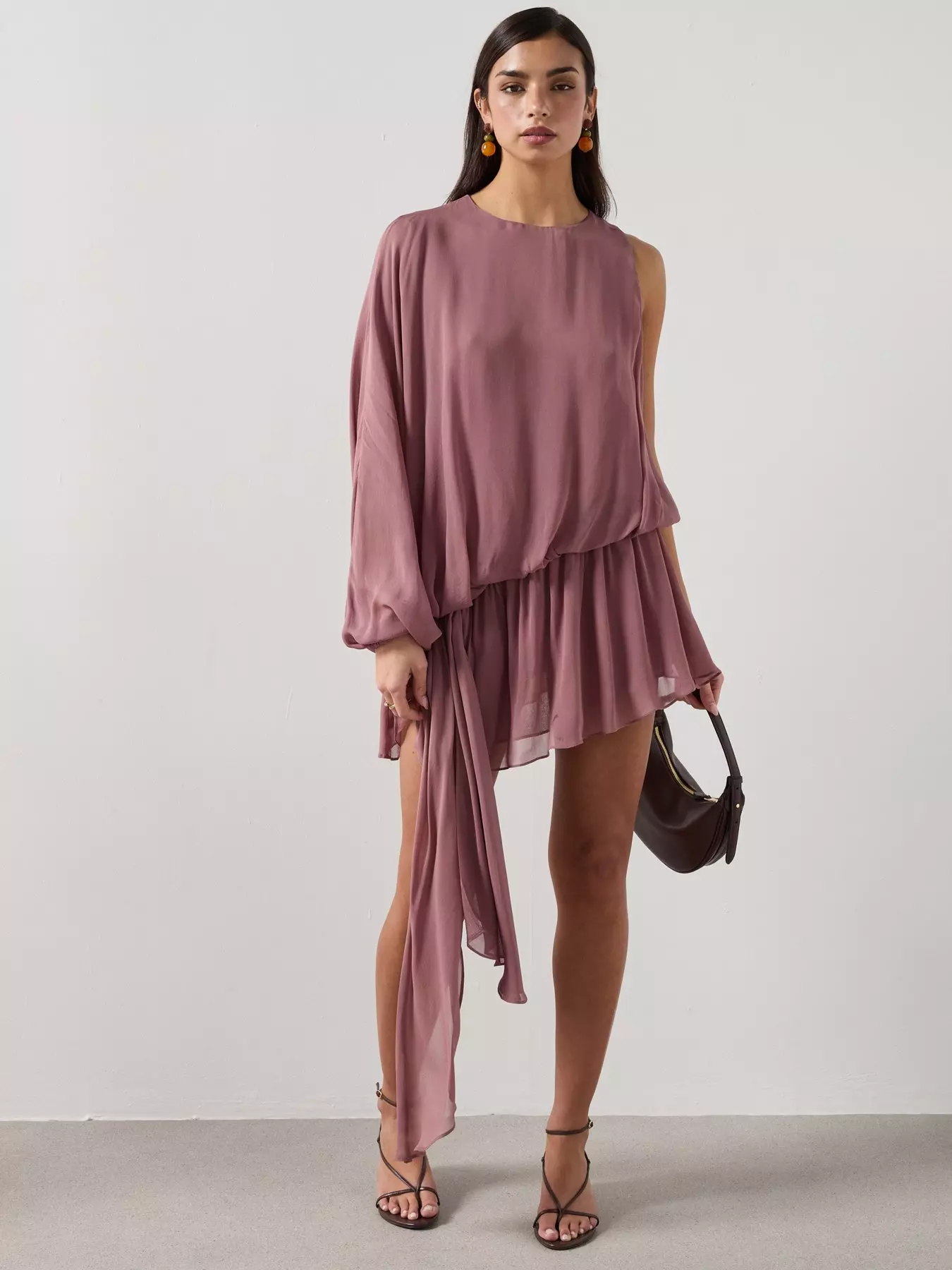 - Asymmetrical gathered waist