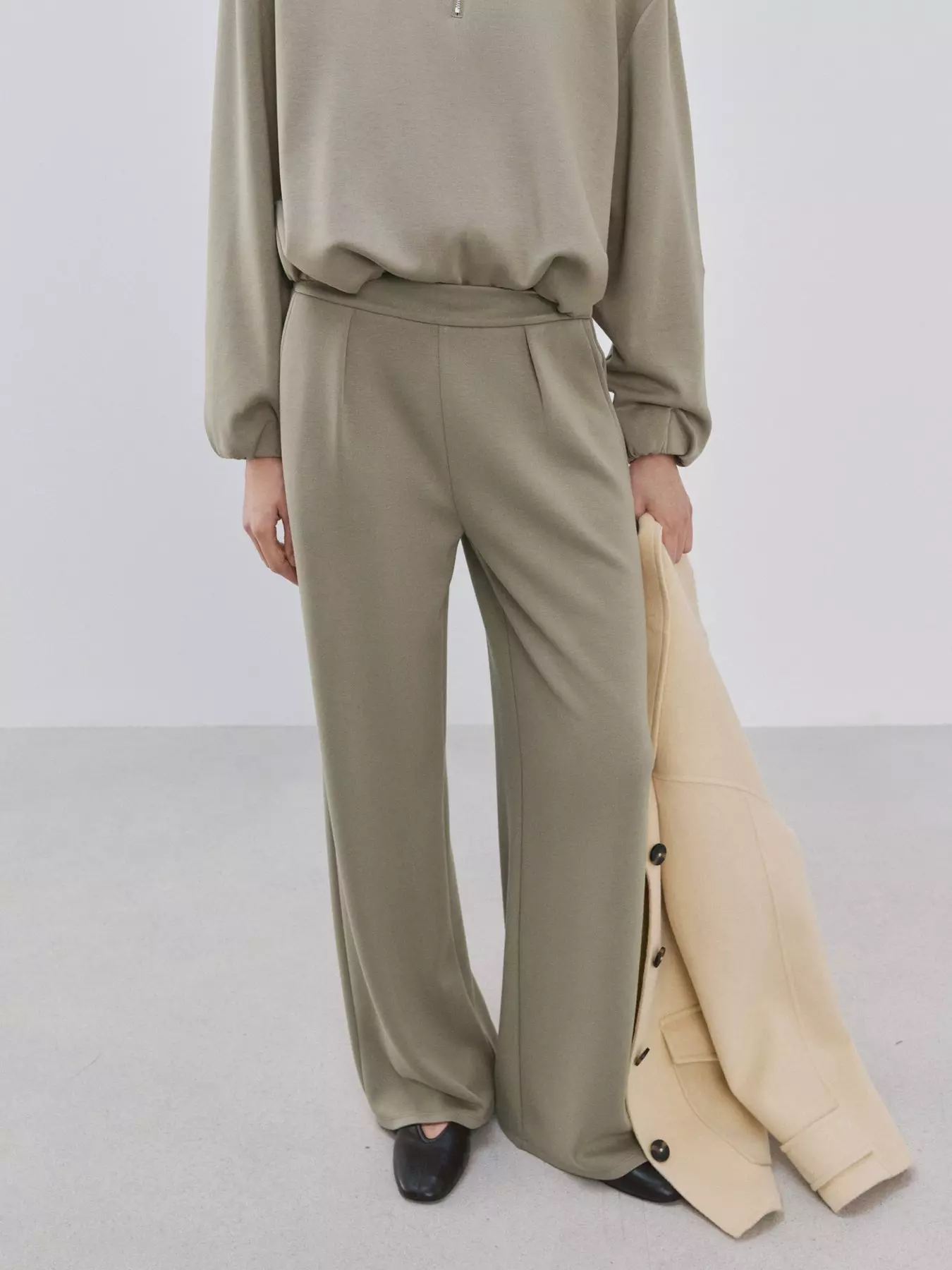 Mango Straight-Fit Trousers With Elastic Waist - Khaki
