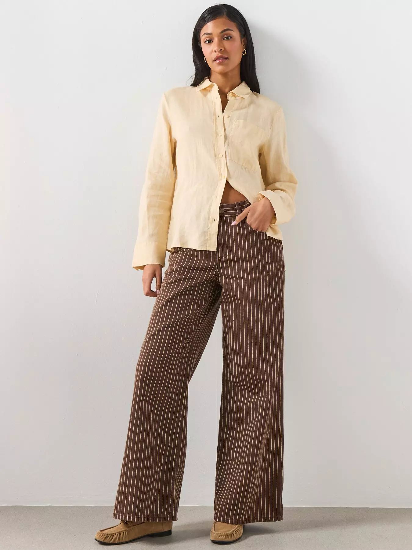 Mango Wide Leg Striped Jeans - Brown
