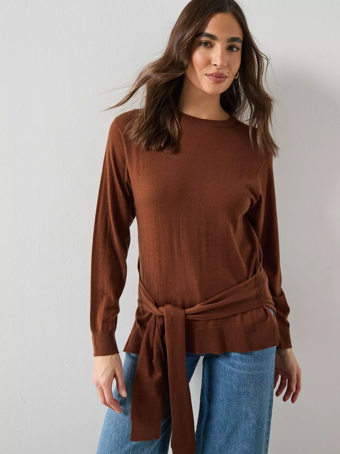 MangoWool Blend Knot Sweater - Brown