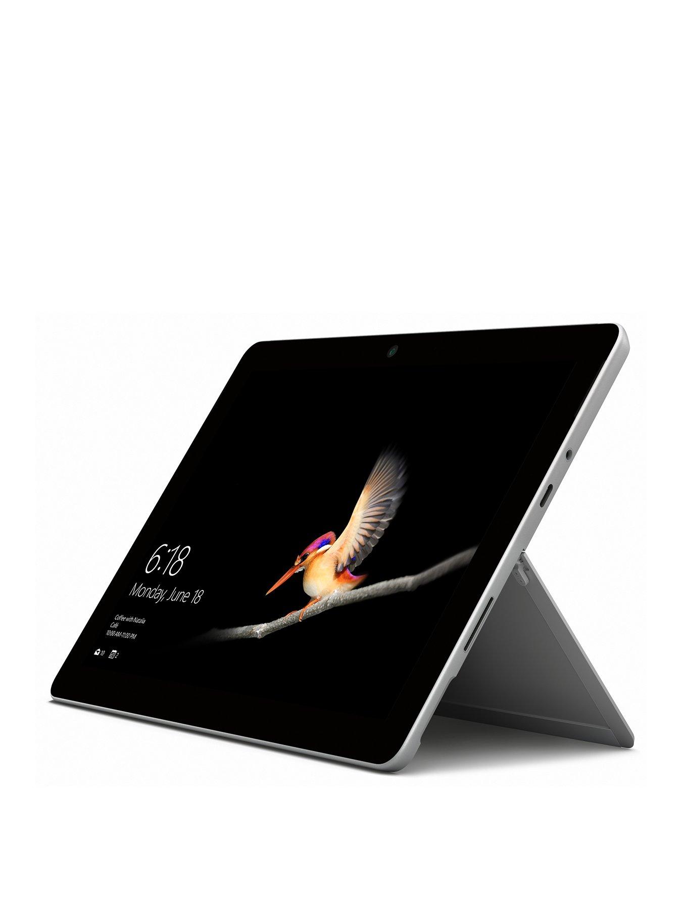 Microsoft Surface GO Intel® Pentium® Gold Processor 4415Y, 4Gb RAM, 64Gb eMMC SSD, 10 inch Touchscreen 2-in-1 Laptop with Optional Microsoft Office 365 HomePen, Mouse, Type cover all sold separately.Our smallest, lightest, and most affordable Surface yet The power and connectivity in a device this small gives you the style and productivity Surface is known for in a more convenient package. At just 1.15 pounds and 8.3 mm thin, Surface Go packs portable performance into a 10” device. Surface Go offers a stunning, custom-built high-resolution PixelSense Display that supports Surface Pen with 4096 levels of pressure sensitivity, low pen parallax, low latency, and precision for accurate note taking, drawing and computer-aided design. In portrait mode, the screen was designed to render the page to the scale of most school textbooks, and in landscape mode, it can render pages side by side as if you were holding a paperback book in hand. At the approximate size of a composition notebook, writing on the screen feels natural and intuitive. Comforts of a laptop, convenience of a 10 inch tablet Surface Go is small and mighty, giving you the performance you need to be productive. A device powered by the 7th Generation Intel® Pentium™ Gold Processor 4415Y, in a fanless design, offering up to nine hours of battery Being able to run Office apps on this device with its portability is one of the things that was critical to the experience we had in mind when we designed Surface Go. A built-in kickstand with full friction hinge that extends to 165 degrees helps you stay in your flow from tablet to studio mode, and a Windows Hello camera allows for familiar, quick, and secure sign-in using face recognition. Surface Go also has the ports you need, including Surface Connect for charging and docking; USB-C 3.1 for data, video, and charging; a headphone jack; and a MicroSD card reader for storage expansion.