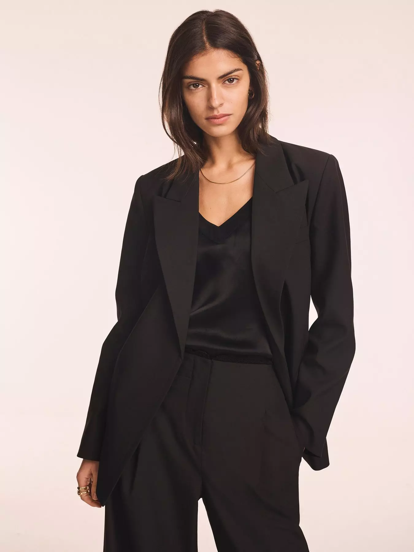 Mint VelvetDouble Breasted Longline Blazer - Black
