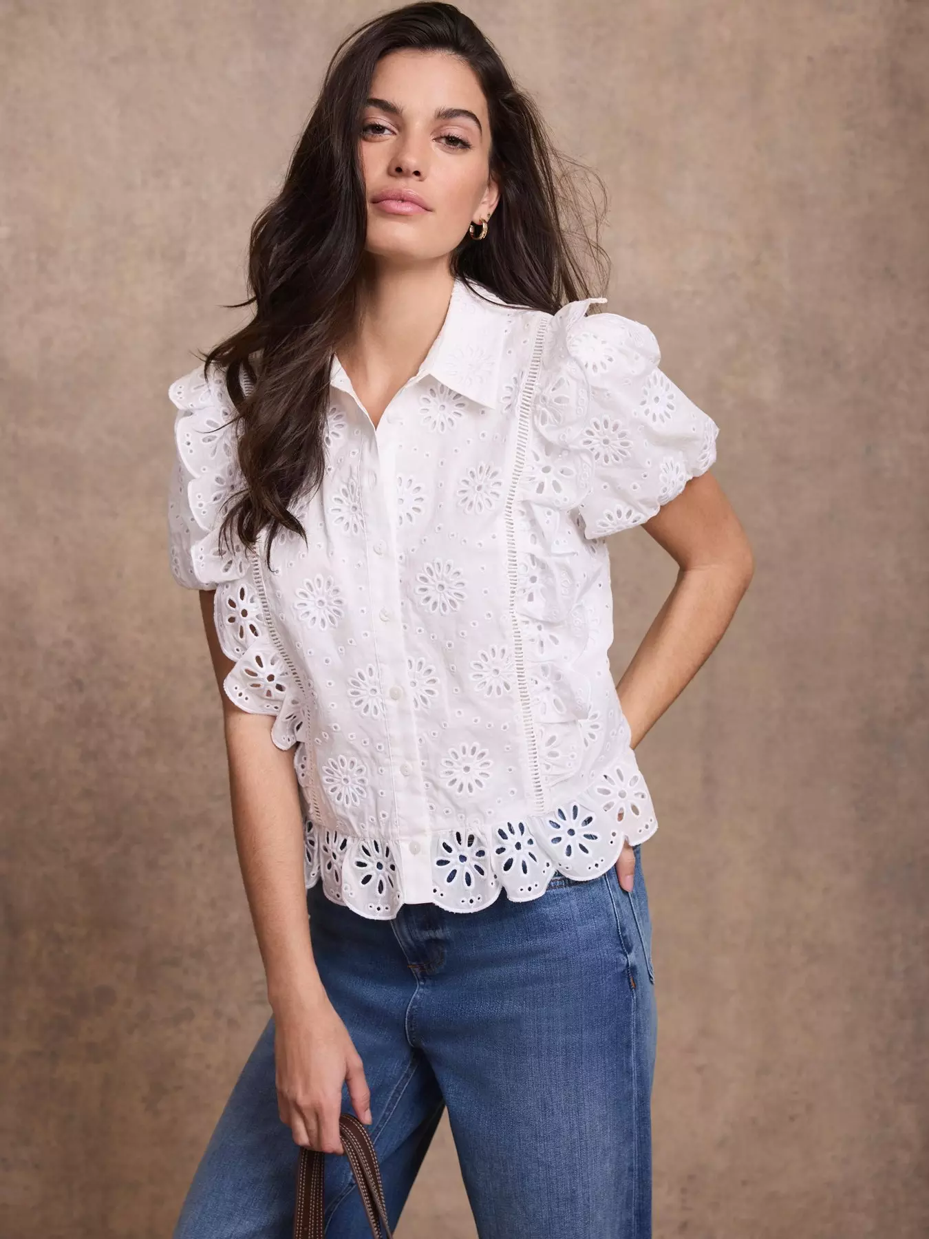 Mint Velvet Ivory Broderie Puff Sleeve Top