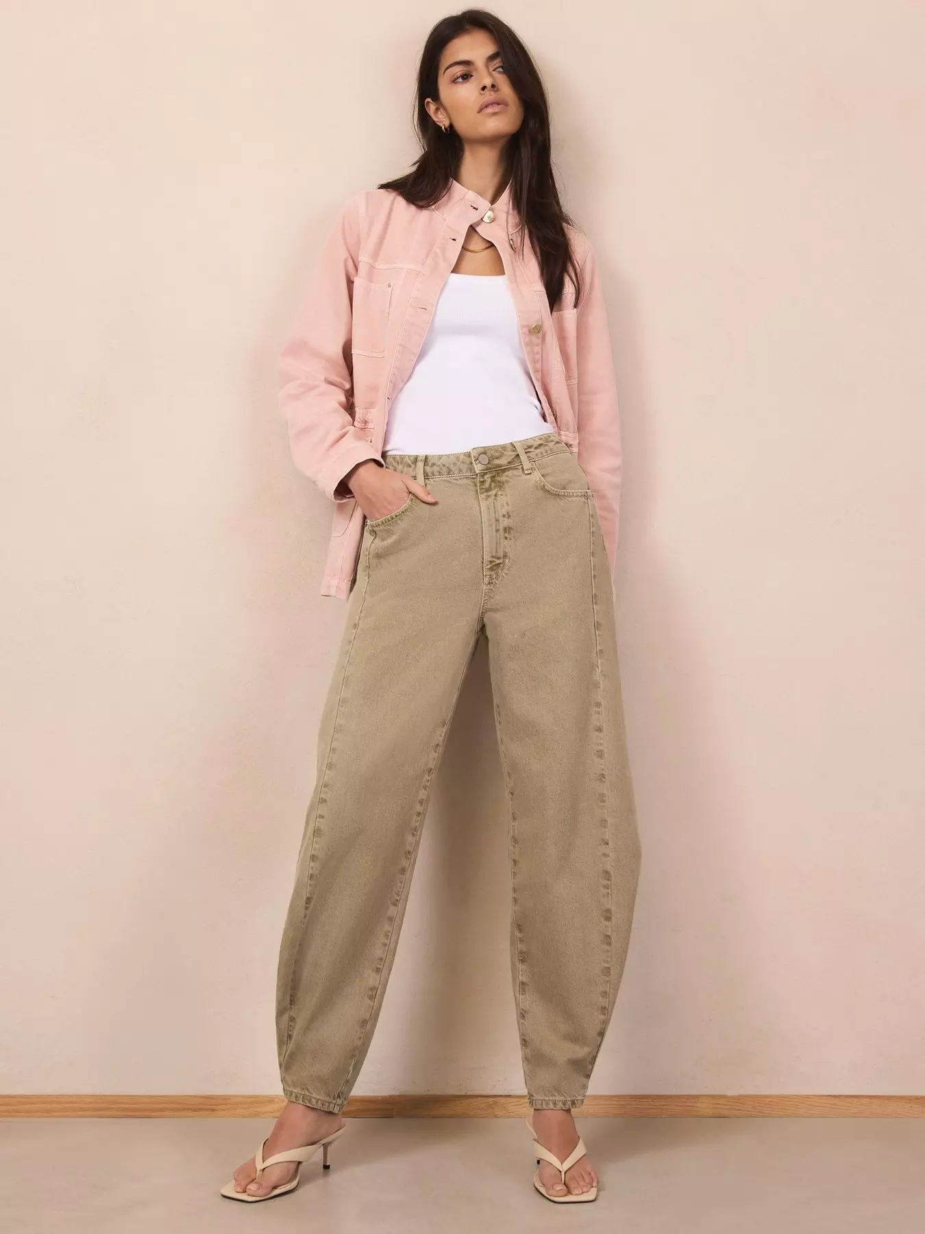Mint Velvet Khaki Popper Balloon Jeans