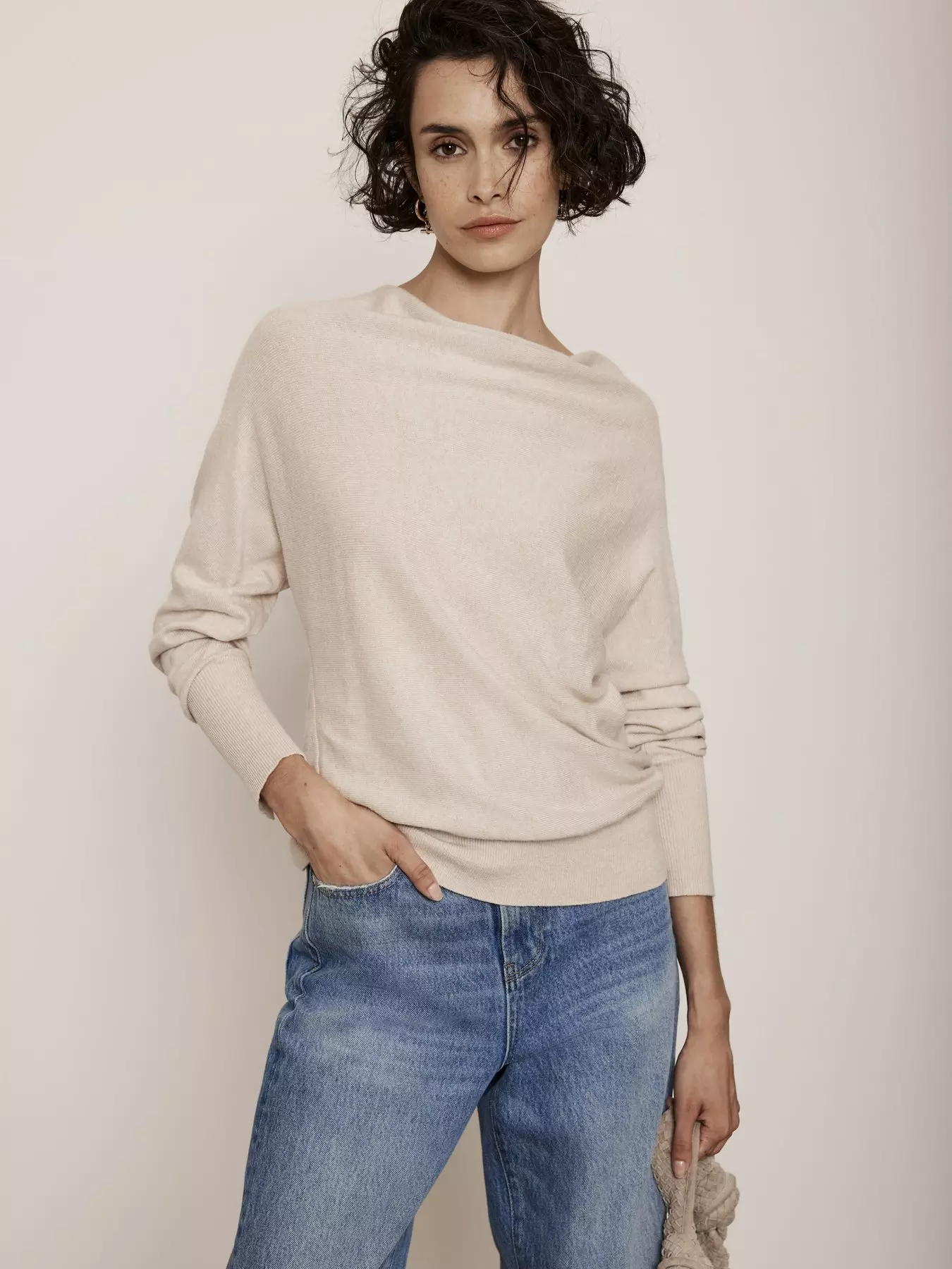 Mint VelvetNeutral Cowl Button Jumper - Natural