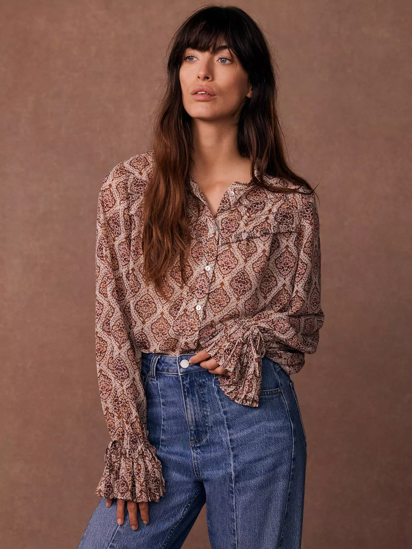 - Neutral Geometric Print Shirt by Mint Velvet