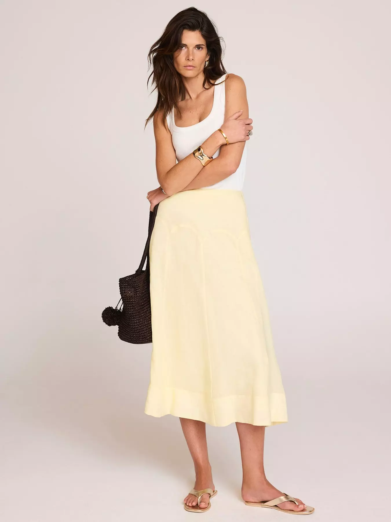 Mint Velvet Yellow Scallop Ramie Skirt