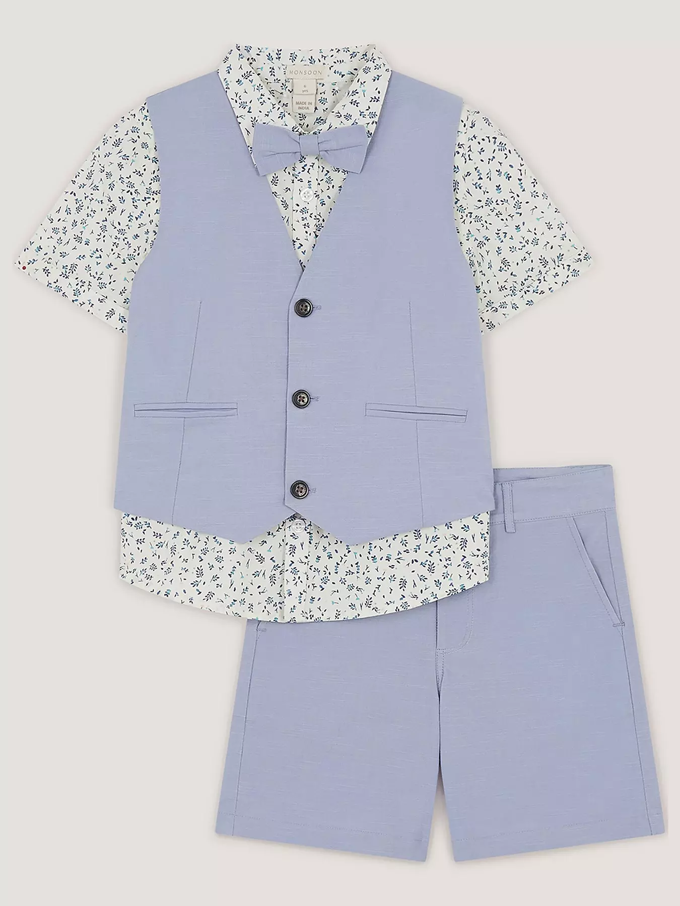 E.A.N: 5 0 4 5 4 6 4 9 9 5 7 2 6Monsoon Boys Oscar 4 Piece Printed Shirt Set - Blue