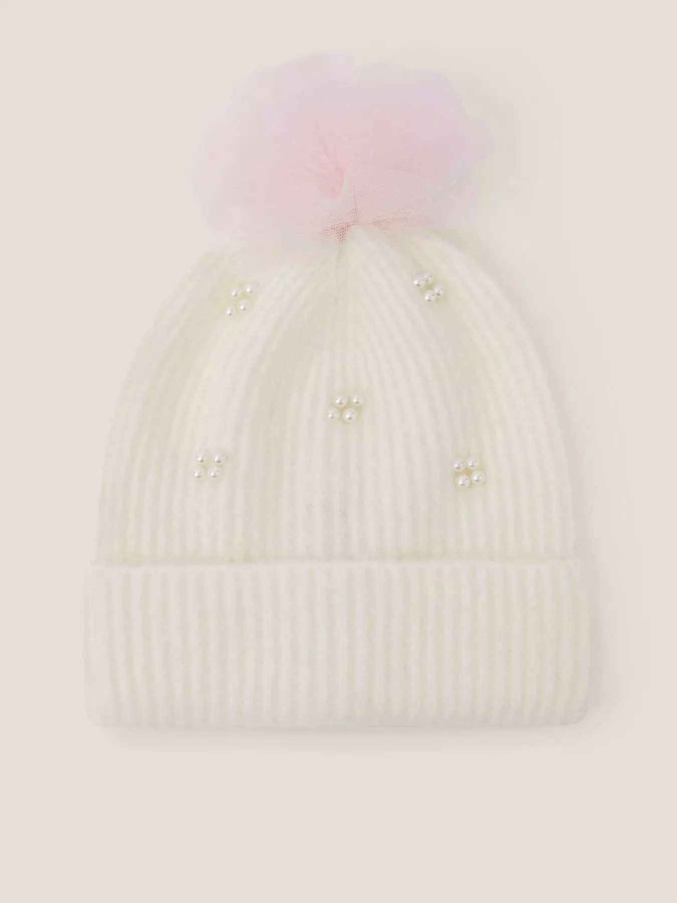 E.A.N: 5 0 4 5 4 6 4 7 5 0 8 9 9Monsoon Girls Pearl Tulle Pom Hat - Light Cream