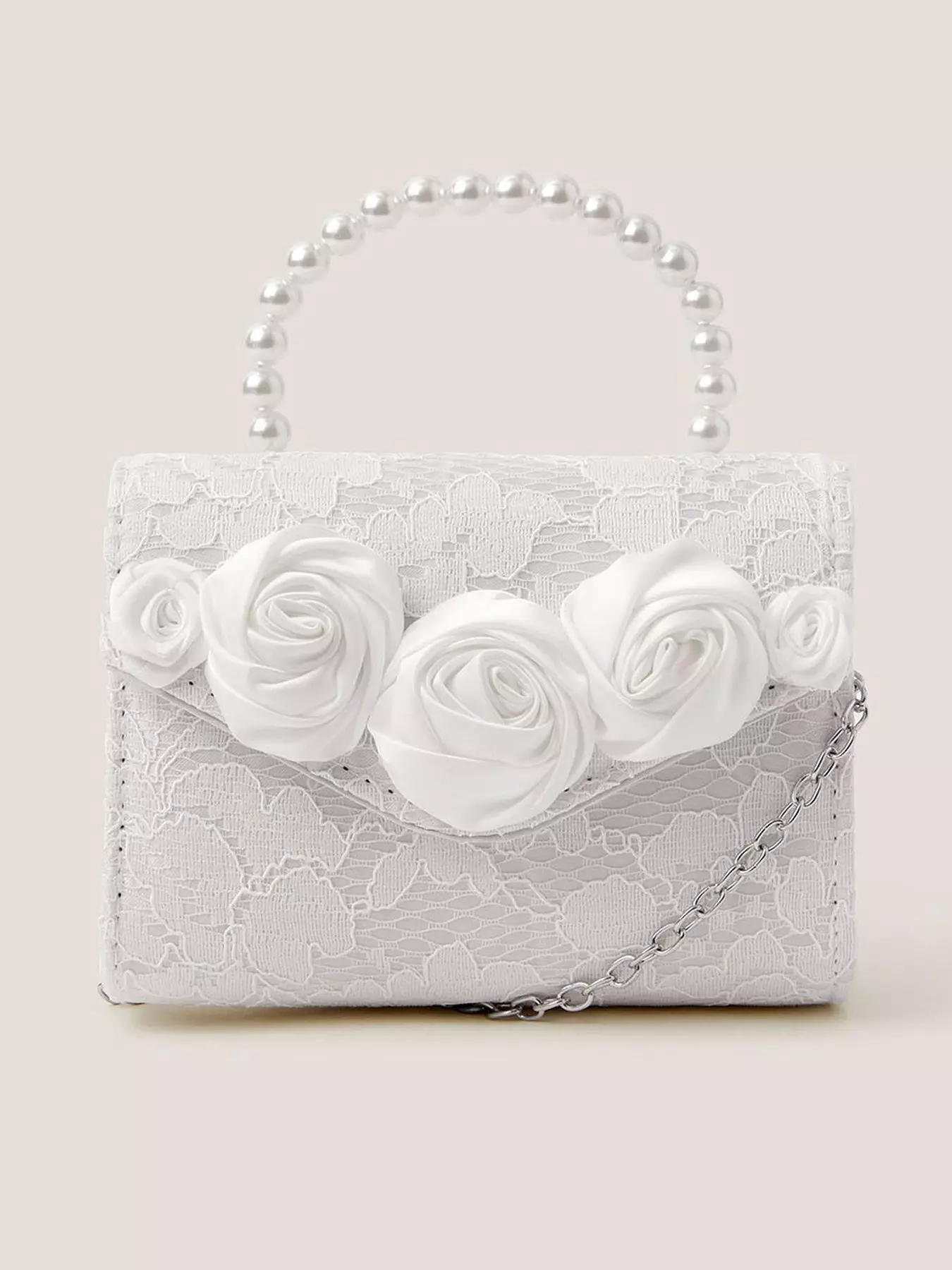 MonsoonGirls Rosette Pearl Handle Bag - Light Cream