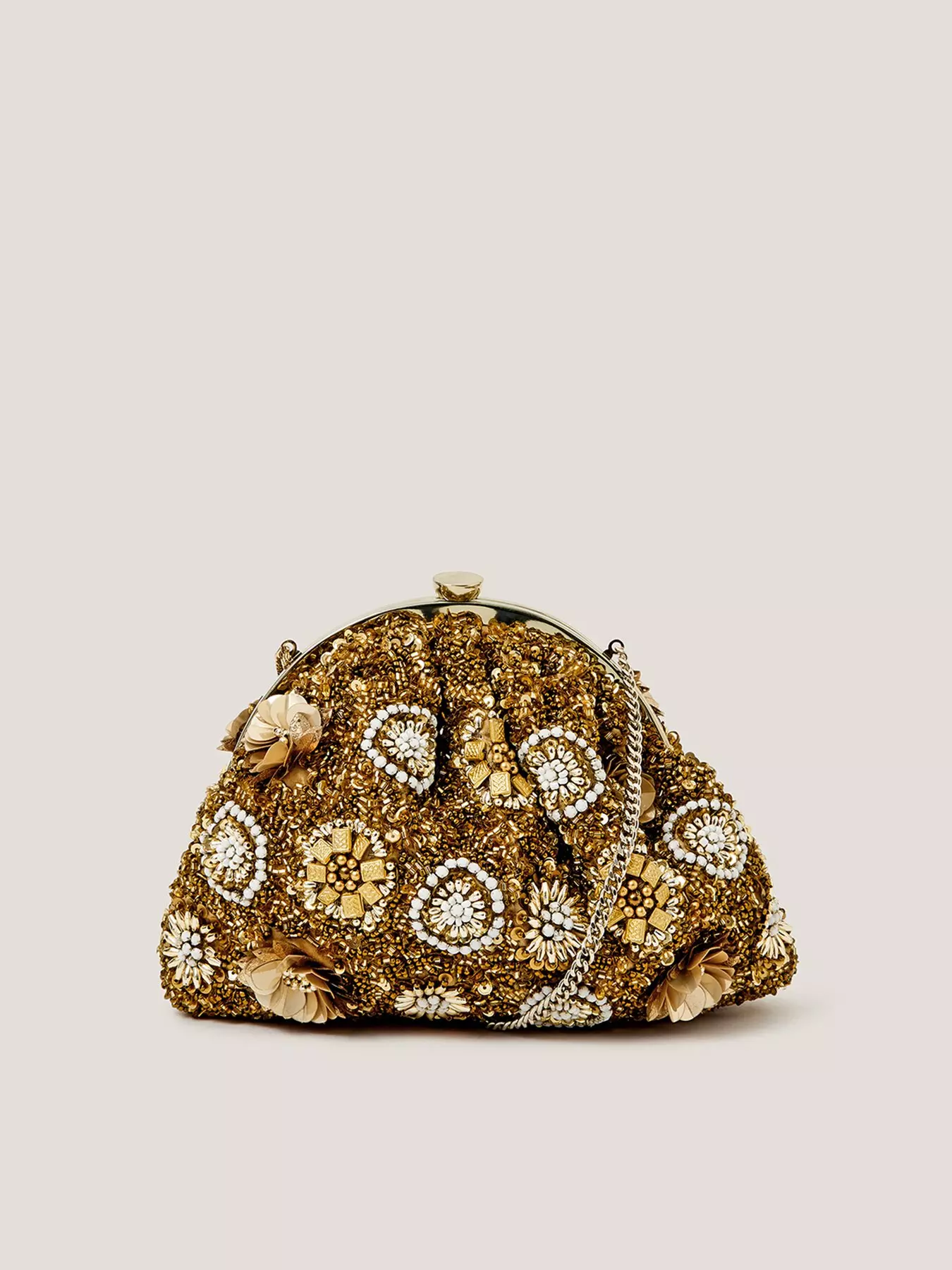 - Lulu Sequin Flower Embellished Clutch by Monsoon