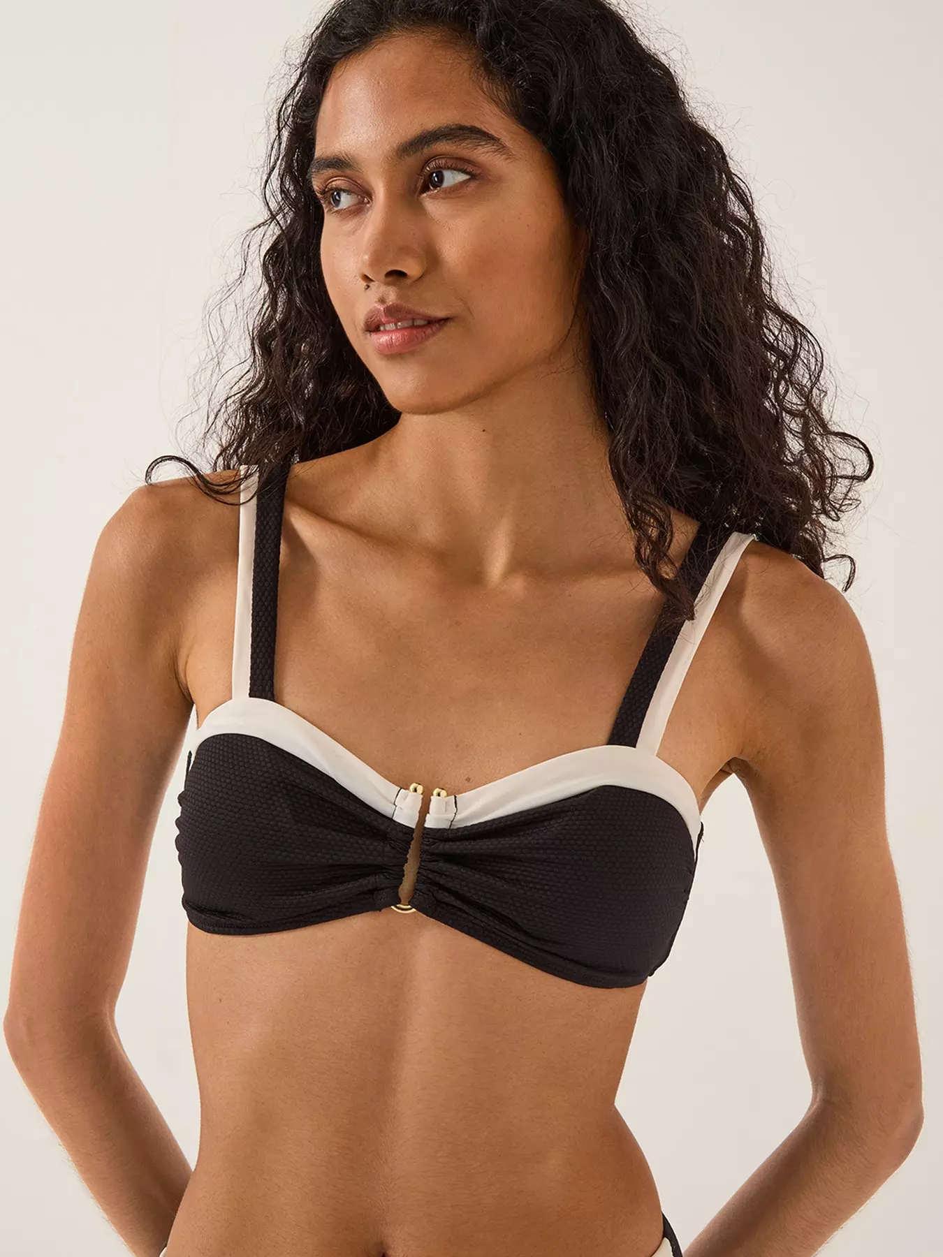 Today's agenda: Salty swims. Designed in a bandeau style with thick straps and a U-shape bar at the front, this bikini top boasts a two tone finish. And the best part? The tie up strap at the back, offering a comfortable fit. Matching bikini bottoms available.- Material Content: Outer: Elastane 4%, Polyamide (Recycled) 74%, Polyamide 22%