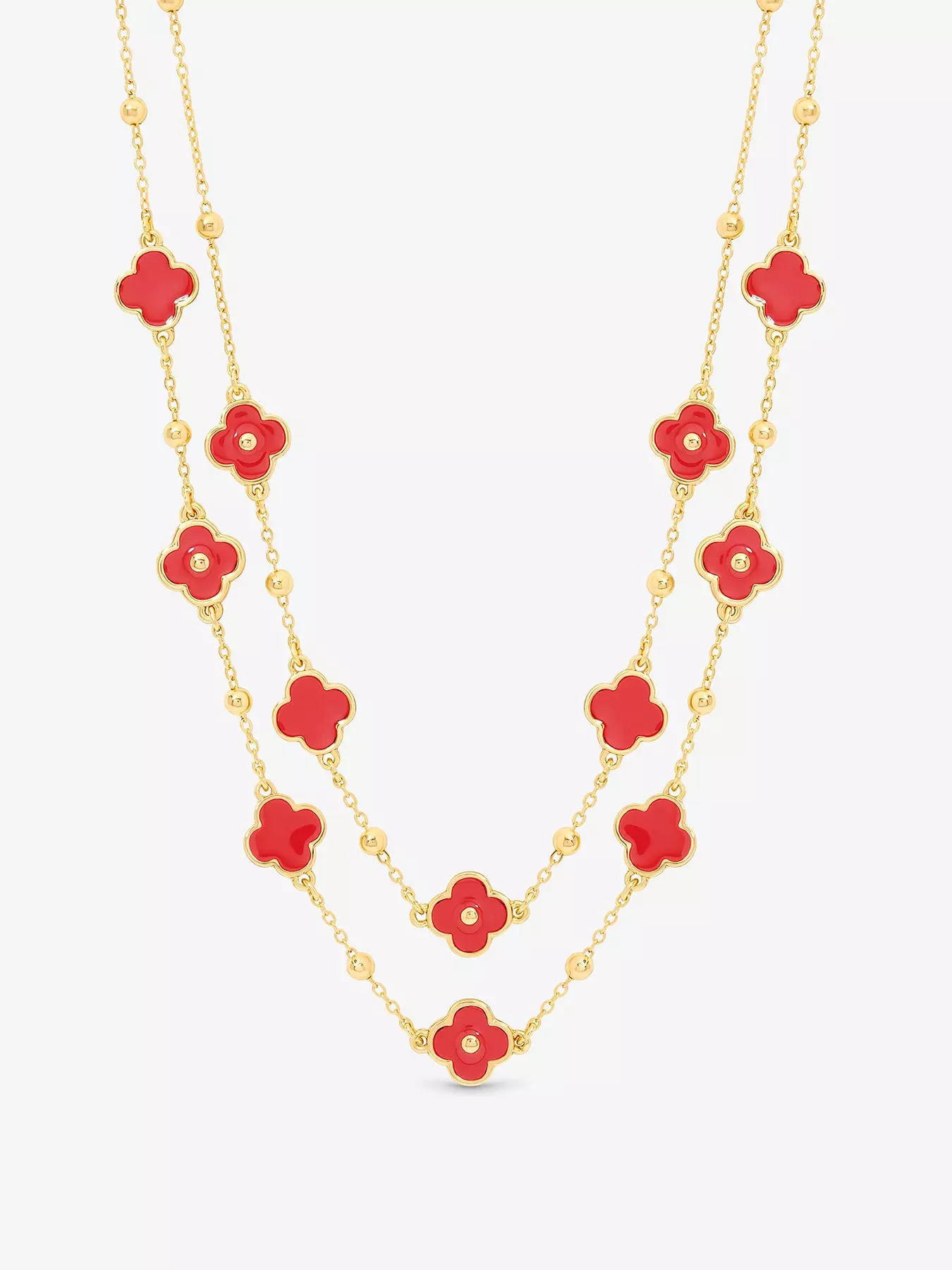 E.A.N: 5 0 5 1 0 2 4 8 8 3 1 3 6Mood Mood Gold Plated and Coral Clover Double Row Necklace