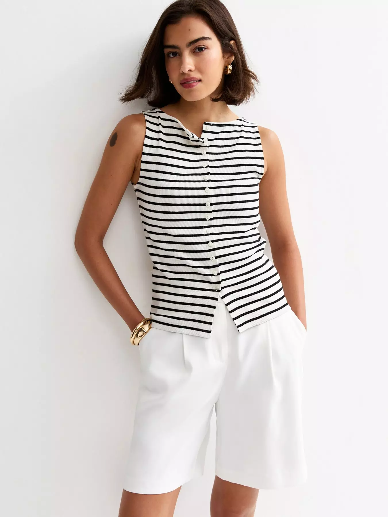 New Look Black Striped Button Through Tank Top