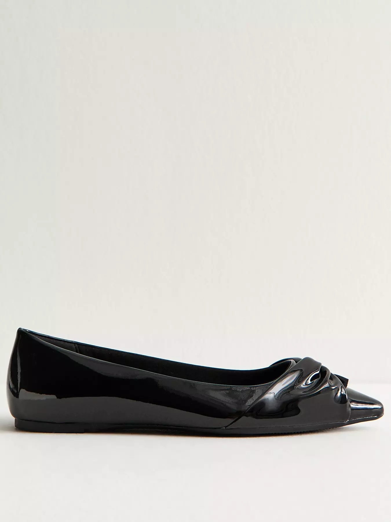 New LookBlack Twist Faux Leather Pointed Toe Pumps