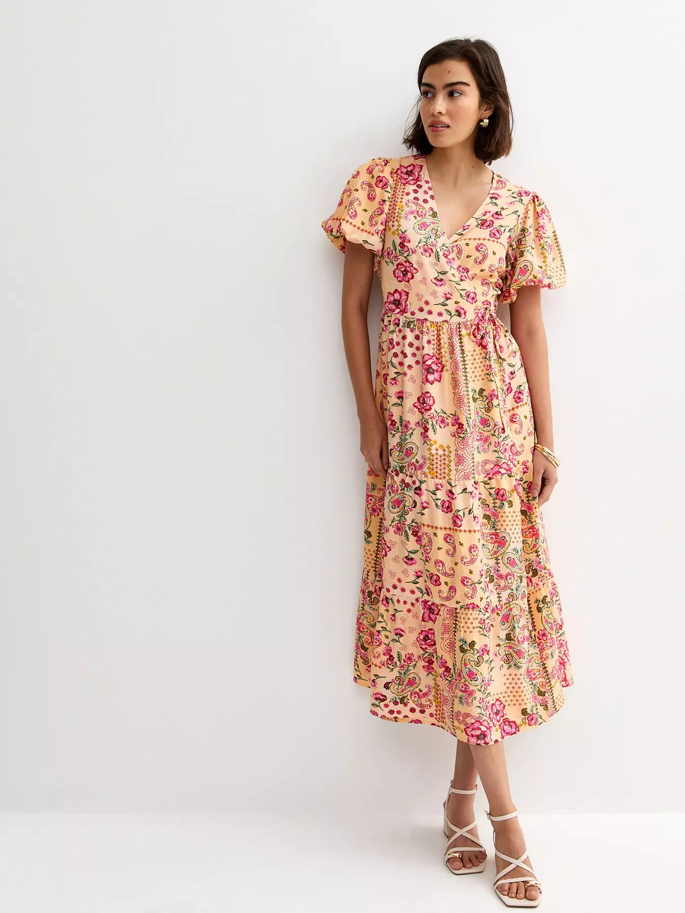 New Look Crepe Patch Print Wrap Midi Dress