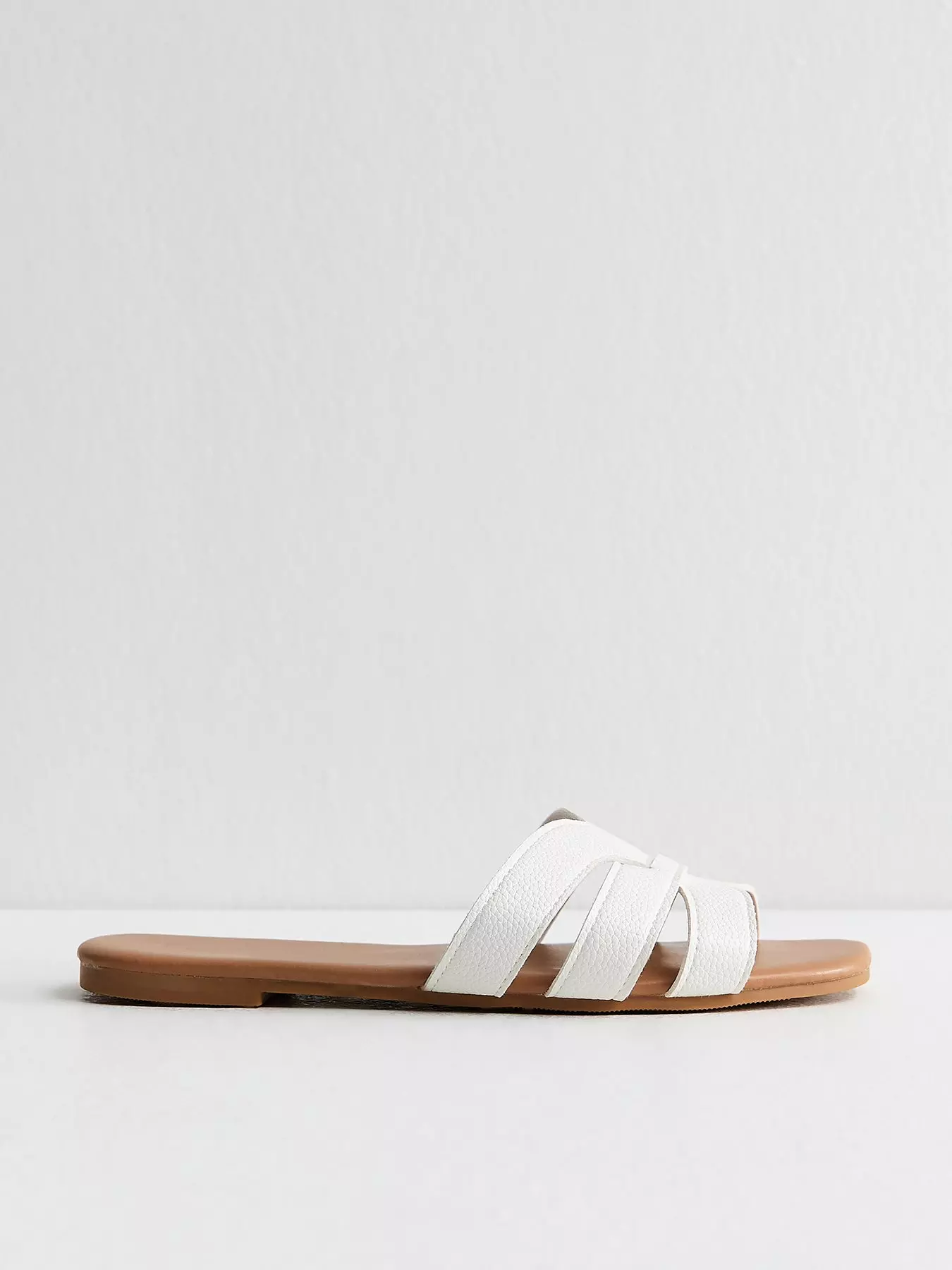 New LookFaux Leather Interwoven Strap Flat Mule Sandals - White
