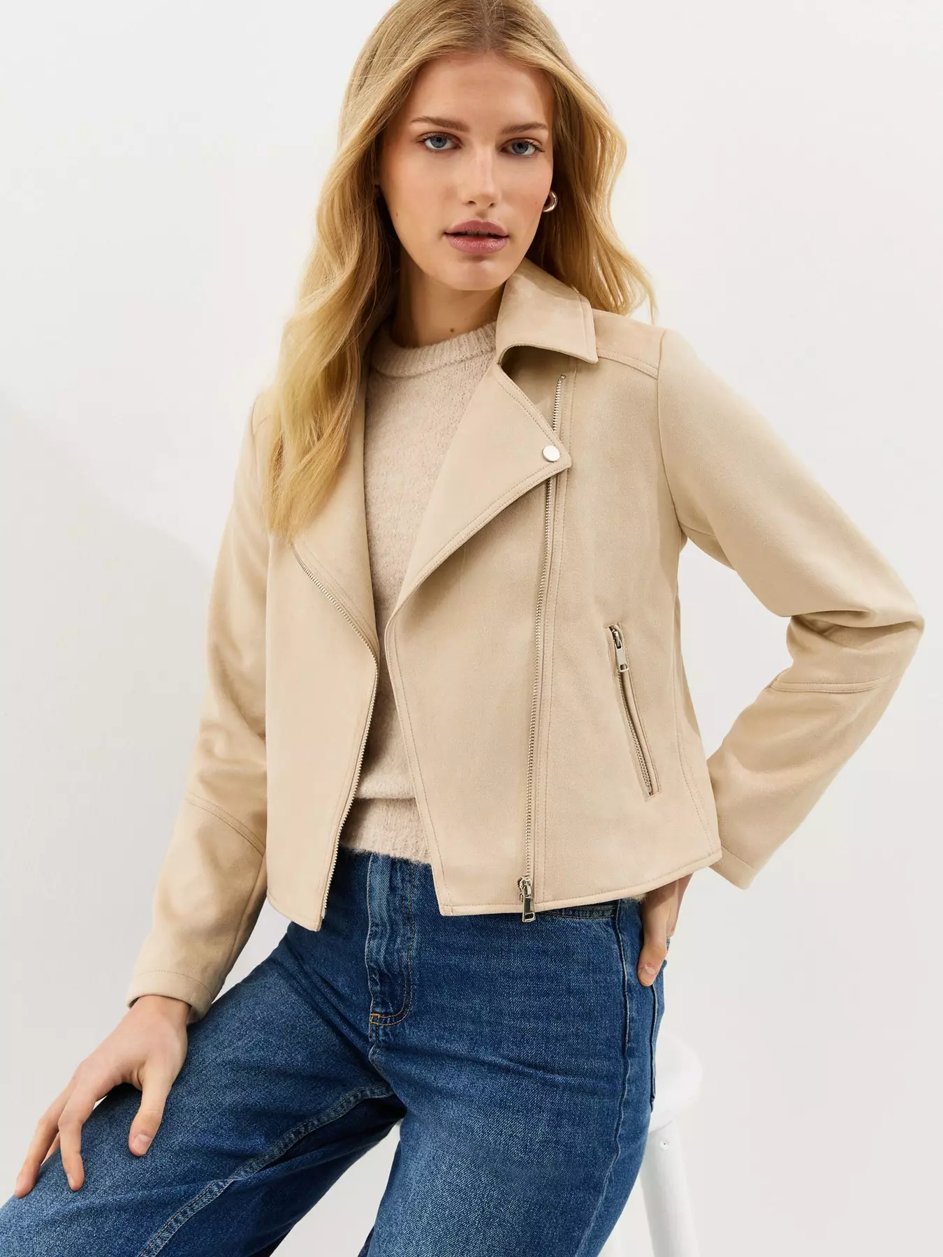 New LookFaux Suede Biker Jacket - Stone