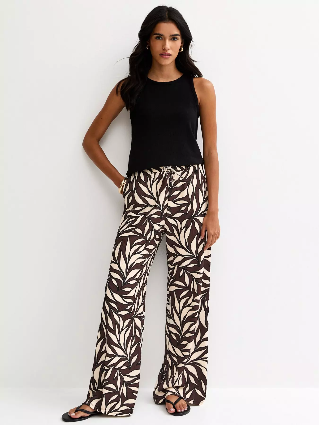 New Look Leaf Print Crinkle Texture Wide Leg Trousers