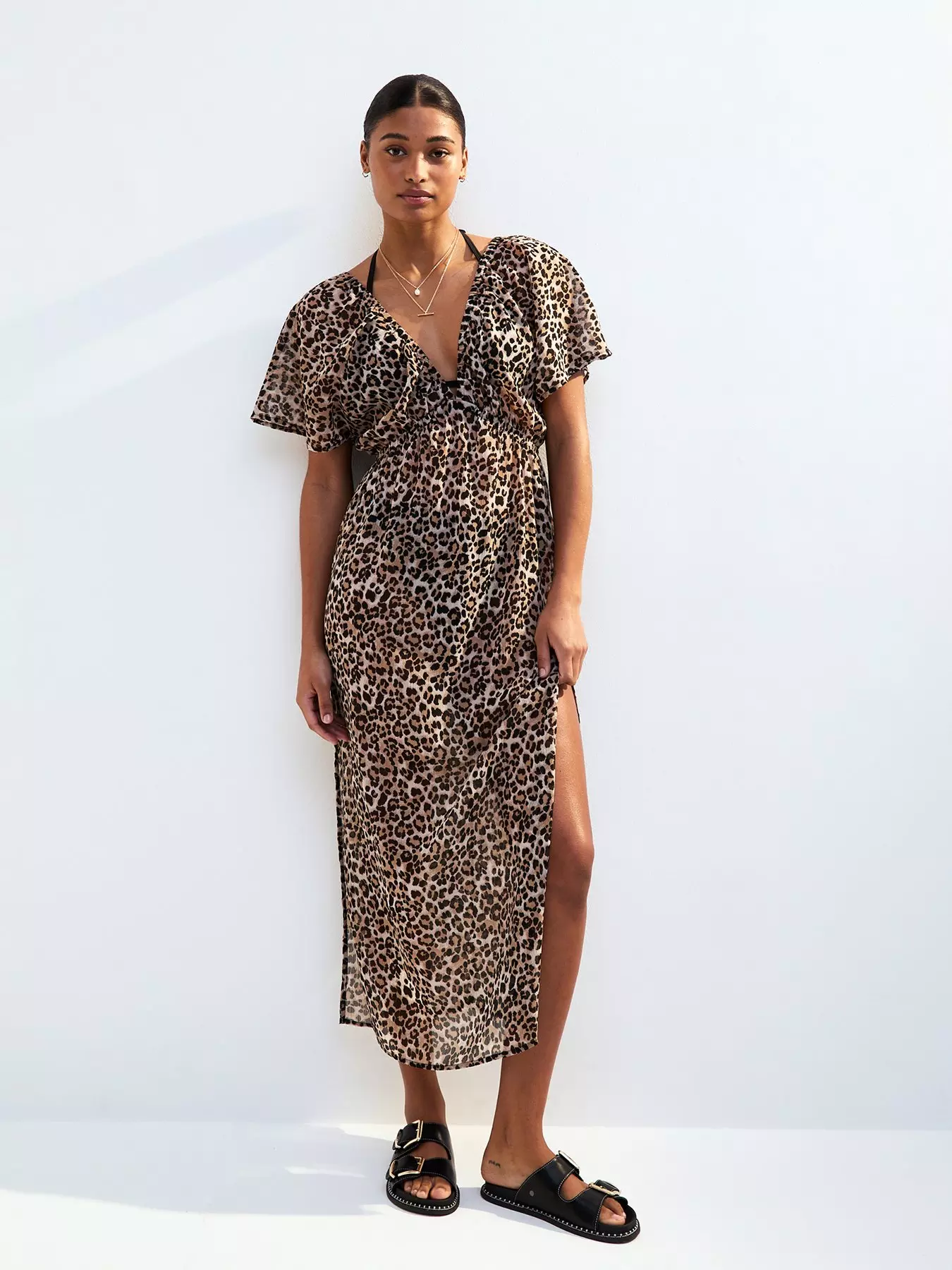 - Leopard Print Short Sleeve Beach Maxi Dress by New Look