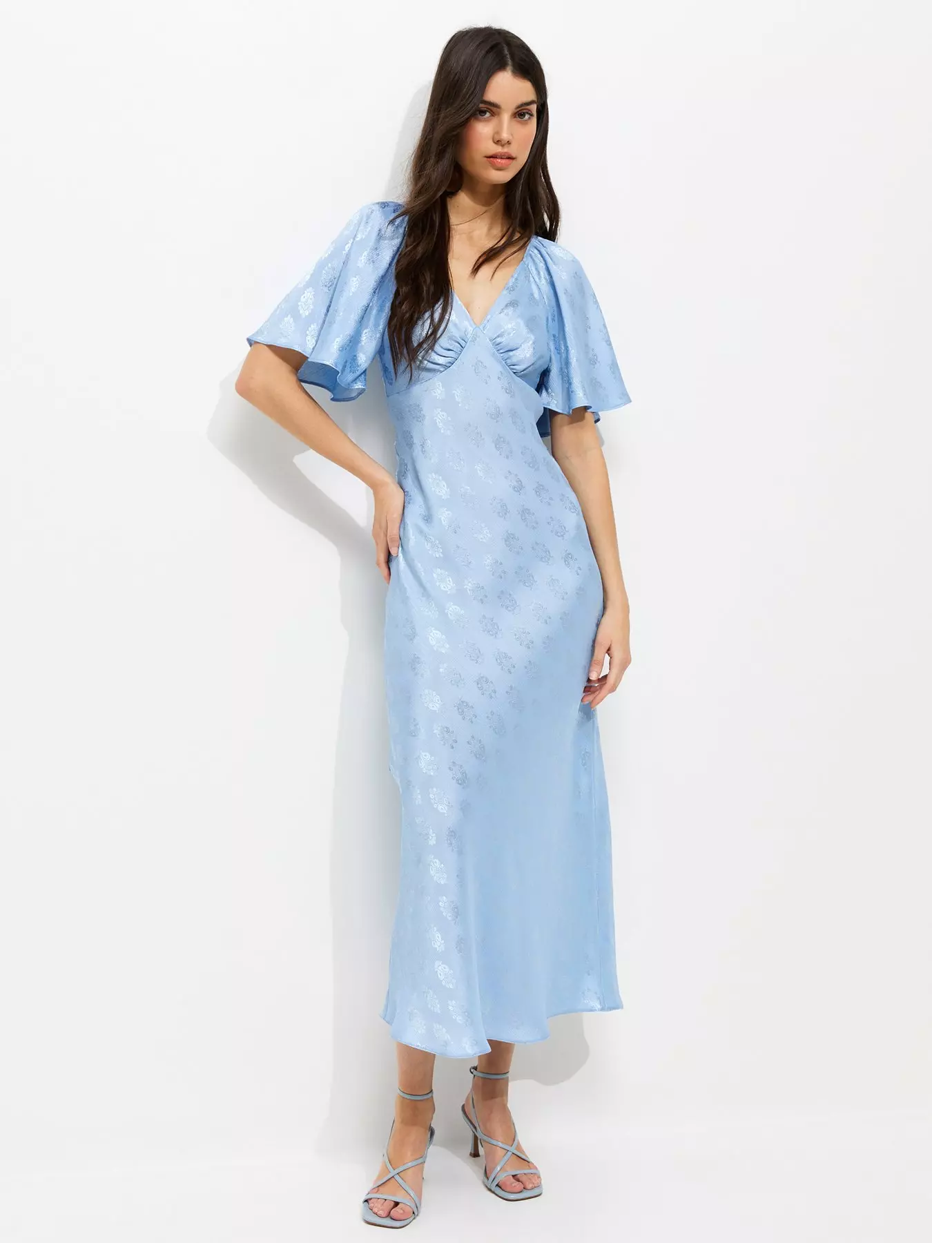 New Look Light Blue Paisley Pattern Jacquard Flutter Sleeve Midi Dress