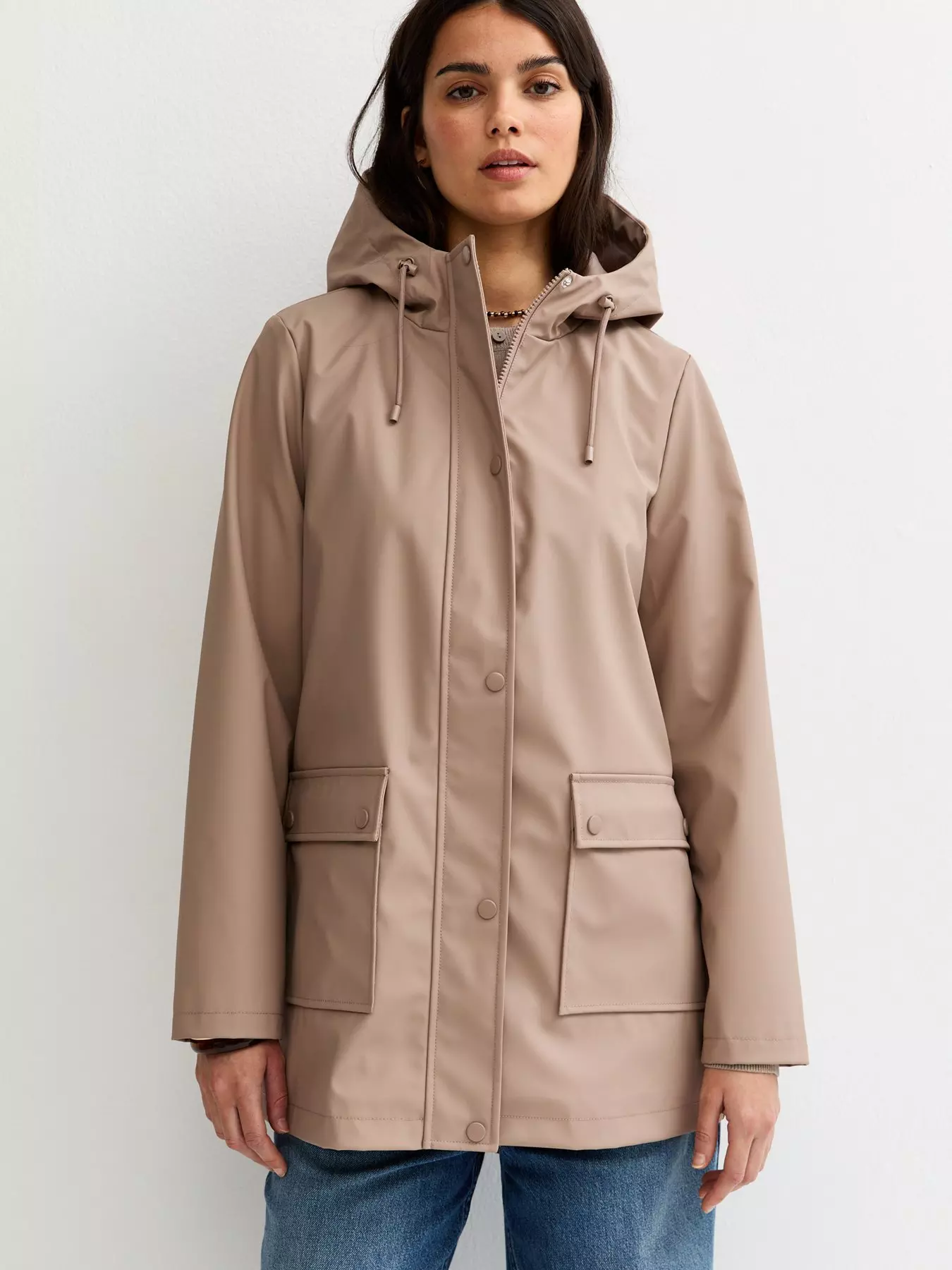 New Look Mink Water Resistant Drawstring Hood Rain Anorak