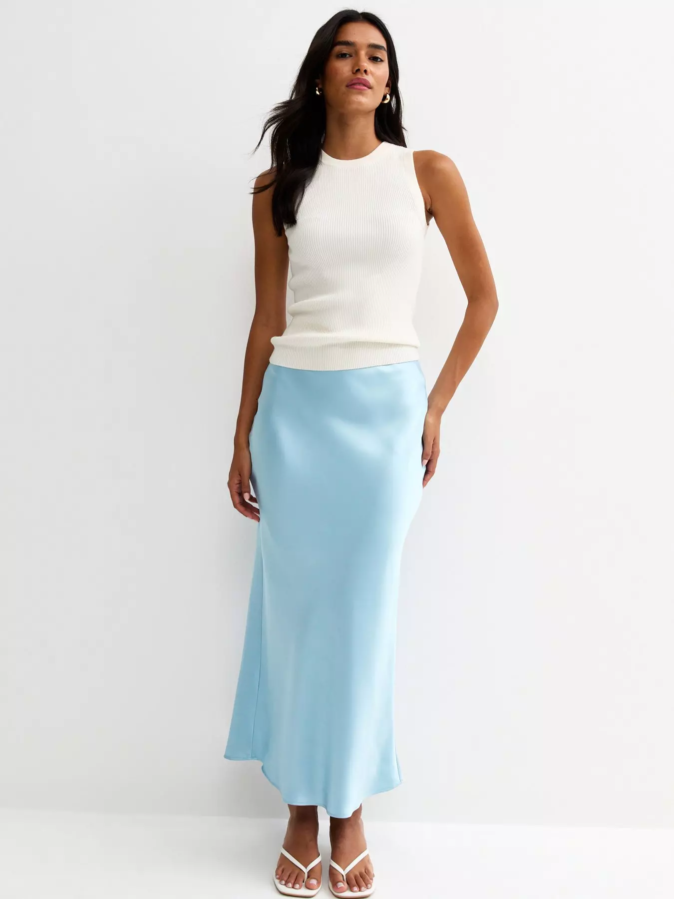 New LookSatin Bias Cut Midi Skirt - Light Blue