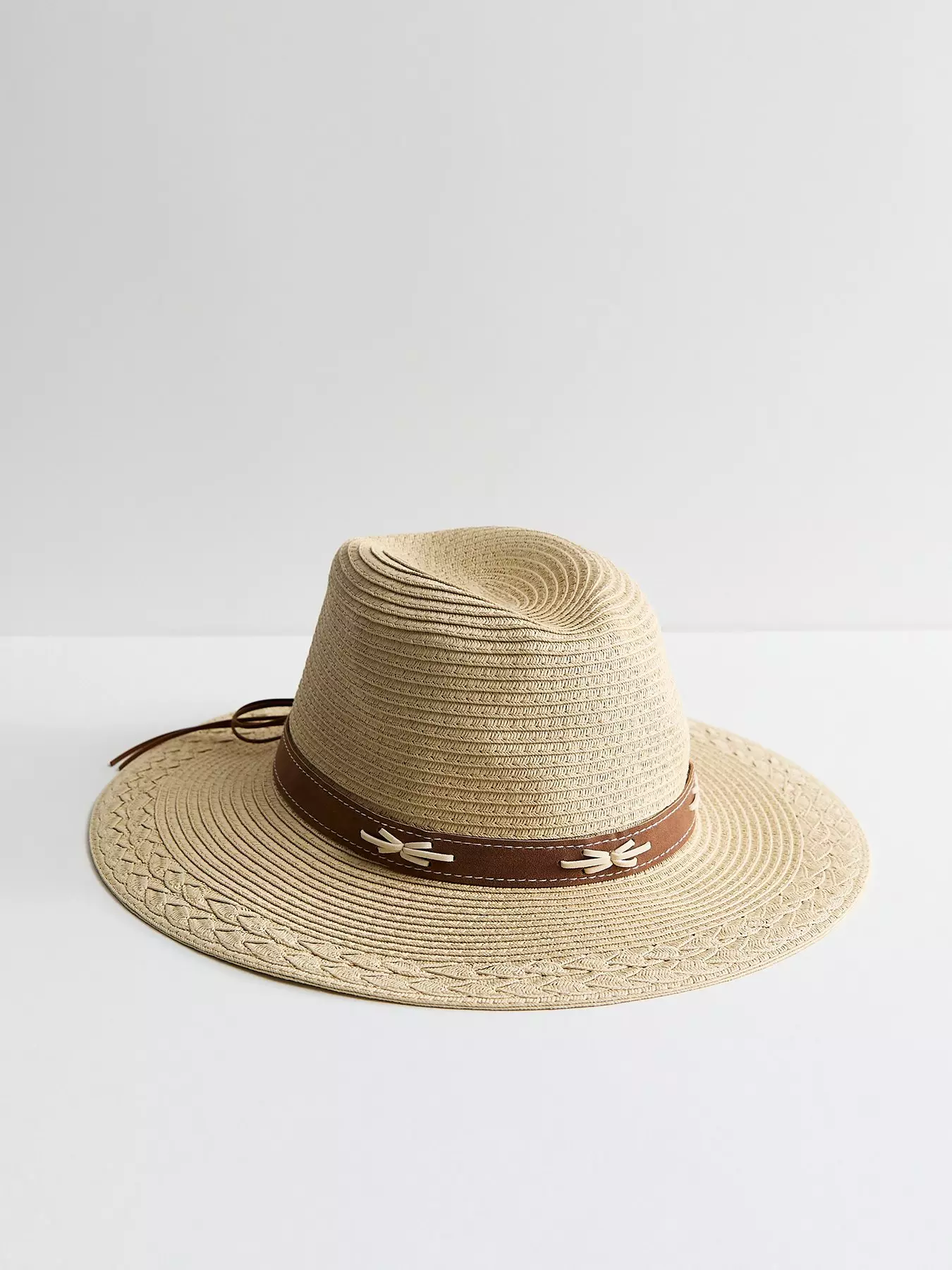 - Stone Suede Trim Straw Fedora Hat by New Look