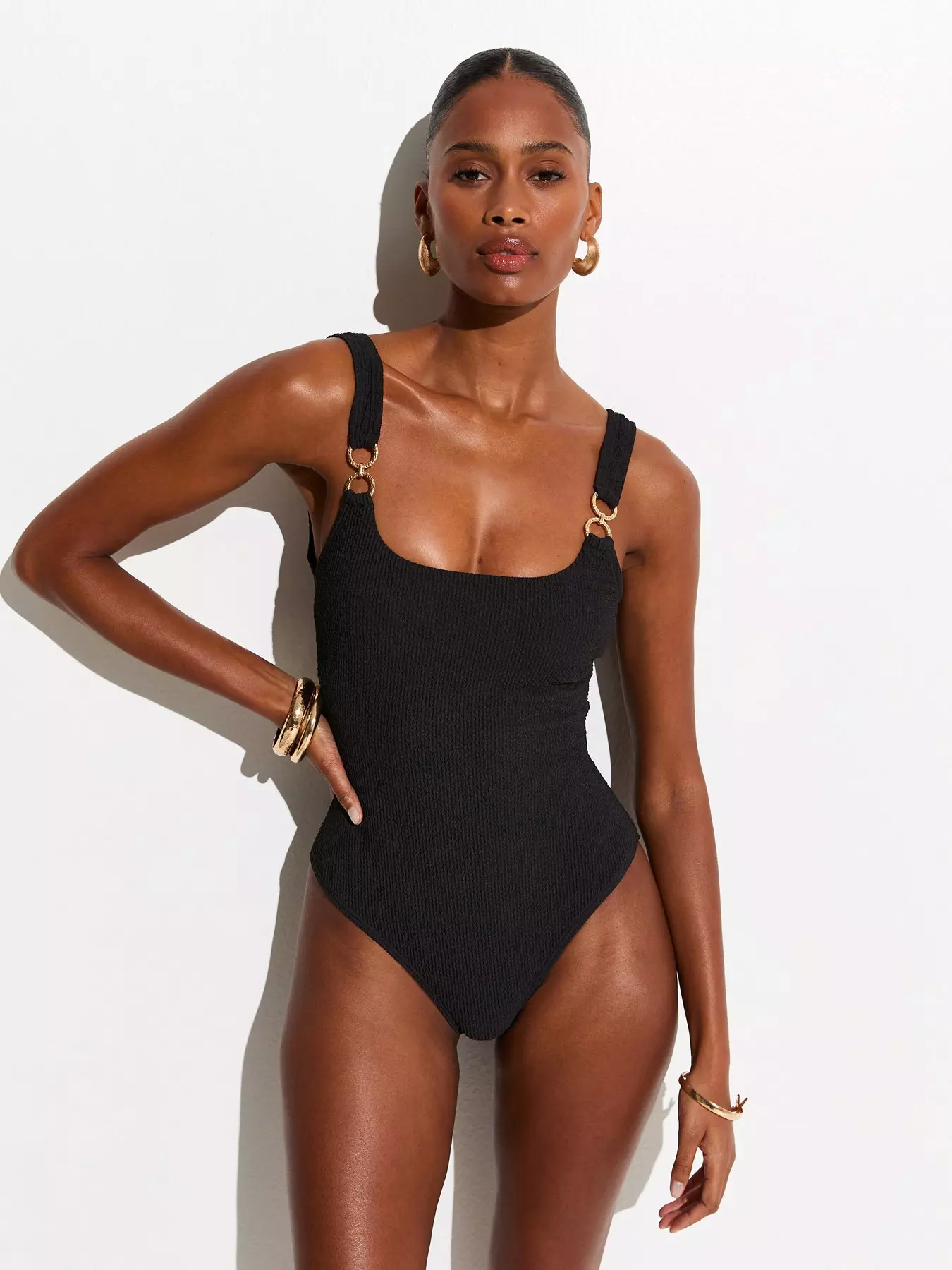 - Tummy Control Double Ring Trim Swimsuit by New Look