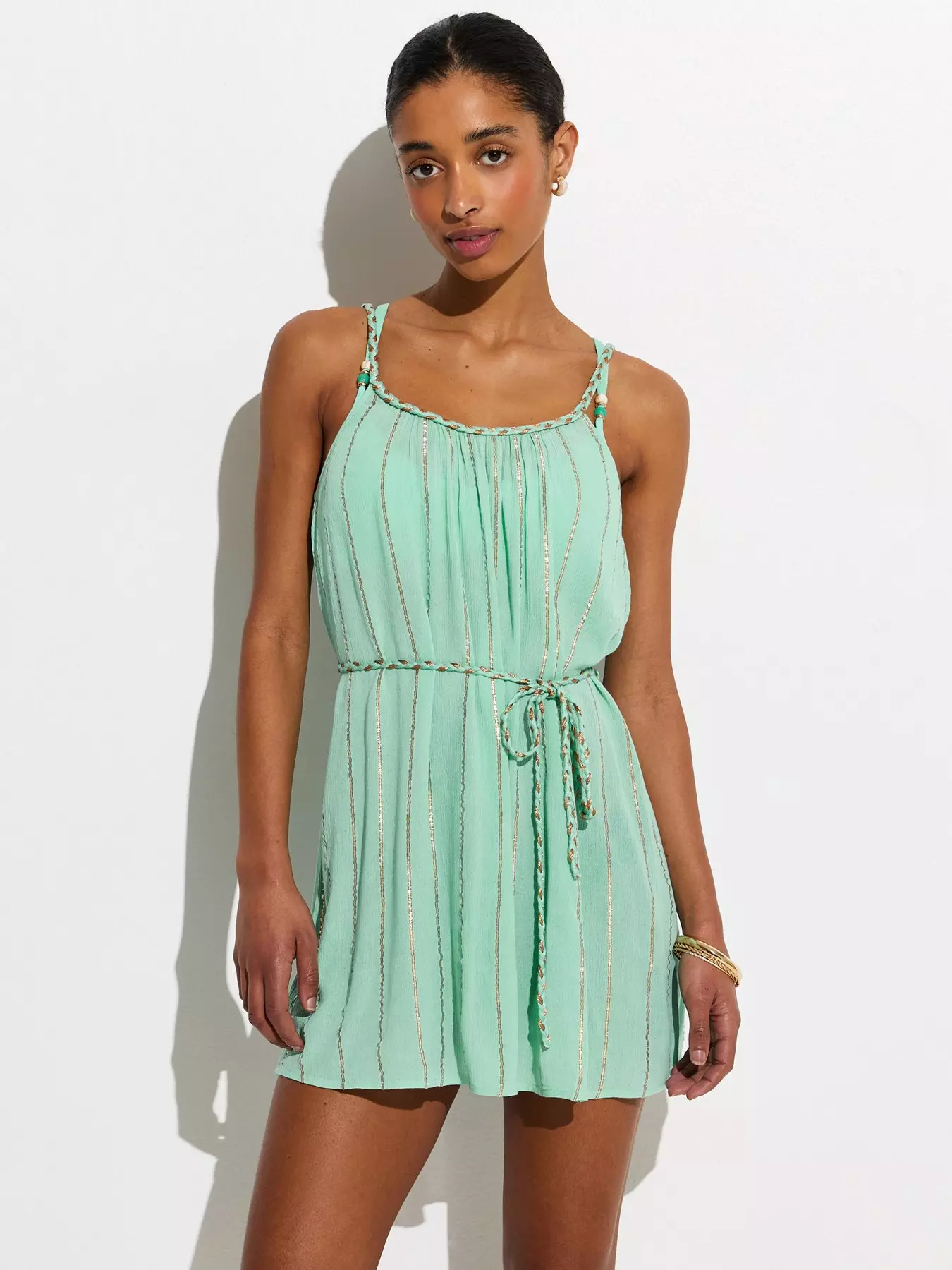 New LookTurquoise Plaited Belt Beach Mini Dress