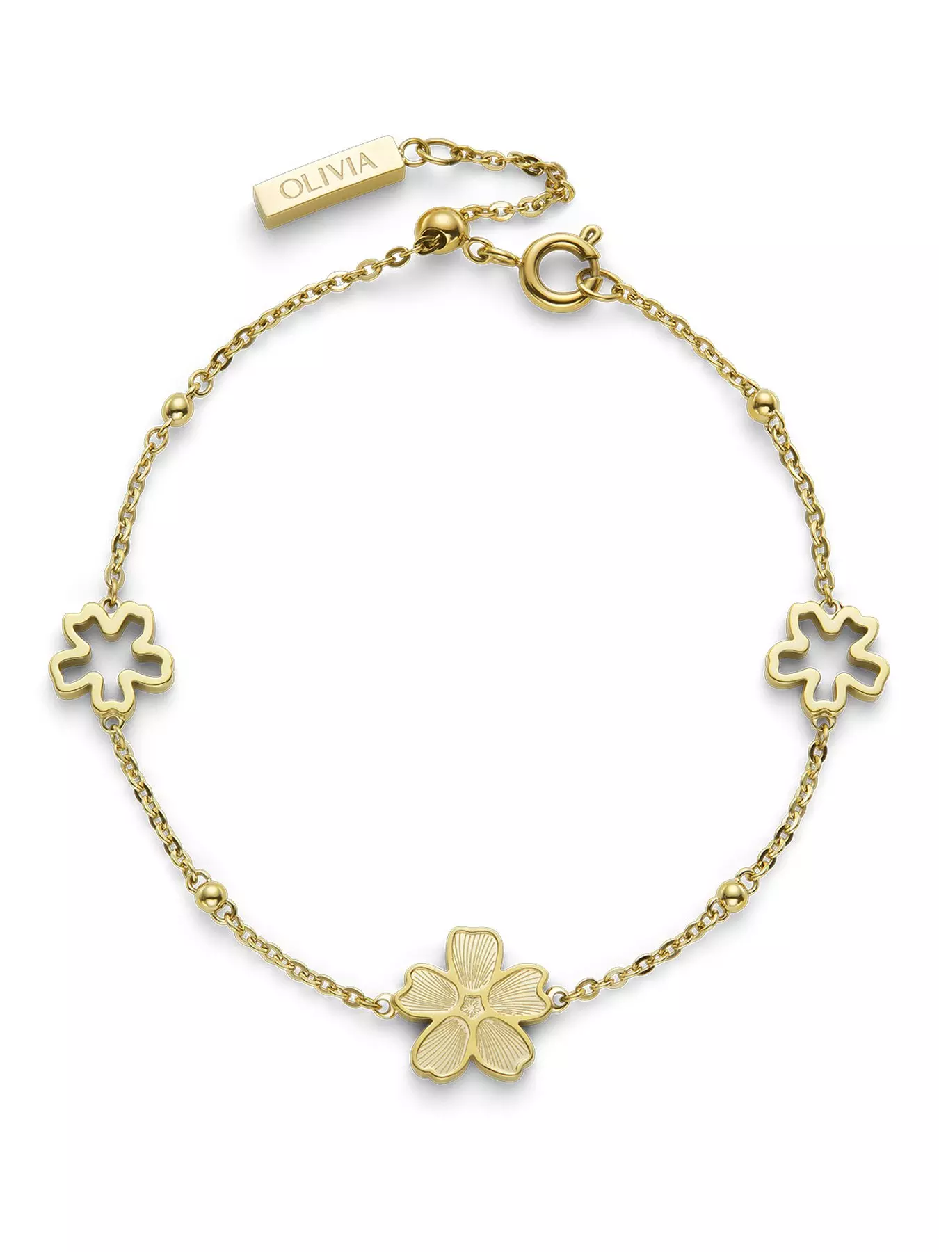 Olivia Burton gold IP Forget Me Not bracelet. Featuring cut out and etched floral motifs. 170 mm with 5 mm extender- Fashion Jewellery Type: Bracelets