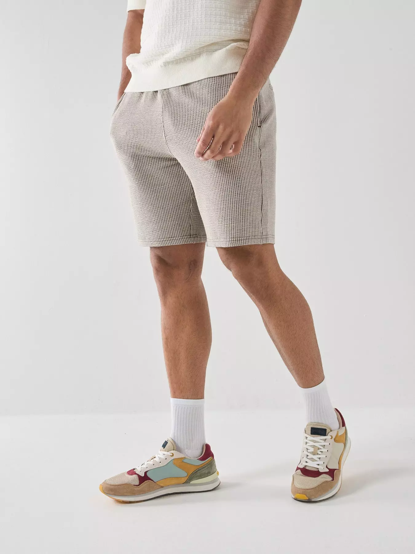 ONLY & SONSKian Seersucker Stripe Short Sleeve Shorts - Brown