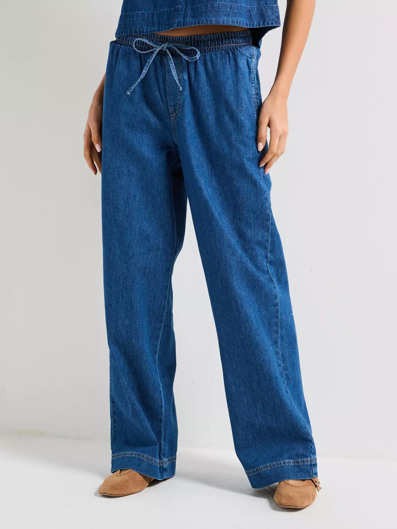 PIECESTabi Mid Waist Pull Denim Trousers - Blue