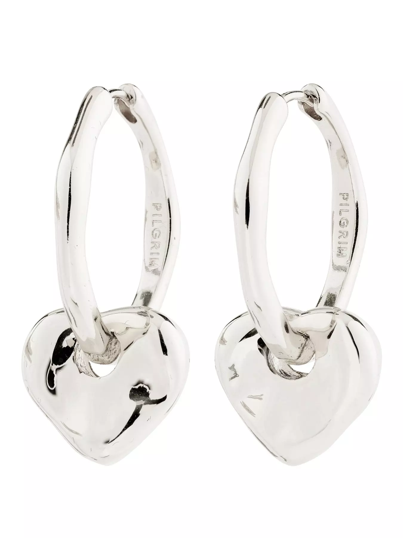 Love locked in hoops! The silver-plated NOVA hoops from Pilgrim blend classic creole shapes with rustic heart pendants for a look that's equal parts on-trend and artisan-inspired. Their glossy finish catches the light, serving up playful summer vibes with every turn. You can wear the heart charms on or off, depending on your mood-go for a sleek city feel or dial up the loveable boho chic energy. Crafted from 99% recycled materials, these earrings prove it's the little things that make all the difference.- Depth: 24 MM
