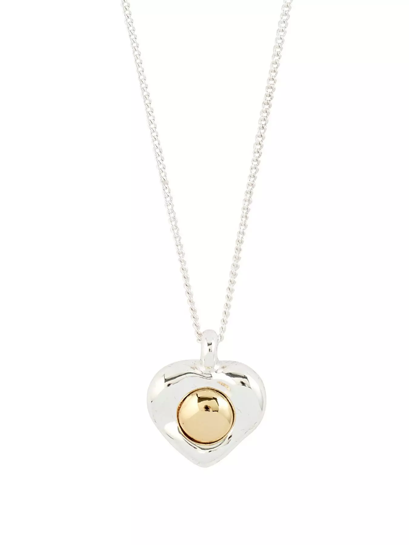 Heart full of shine! The silver-plated NOVA necklace from Pilgrim is a heartfelt key piece, featuring a gleaming heart pendant with a gold-plated centre for that extra touch of luxe. It's all about contrasts - softness and strength, coolness and warmth - brought together in one standout design. This summer's go-to trend is mixing metals, and the NOVA chain nails that vibe with effortless style. Pair it with a flowy dress for dreamy energy or layer it up with other chains for an urban, stacked look. The necklace measures 38 cm plus a 9 cm extension chain and is crafted from 99% recycled materials - fashion-forward style that cares for the planet.- Depth: 6 MM