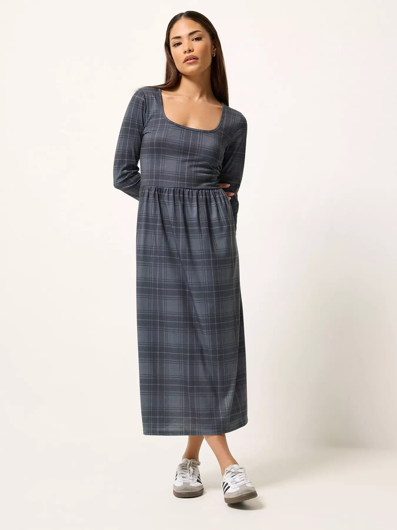 PixieGirl Petite Long Sleeve Check Midaxi Dress