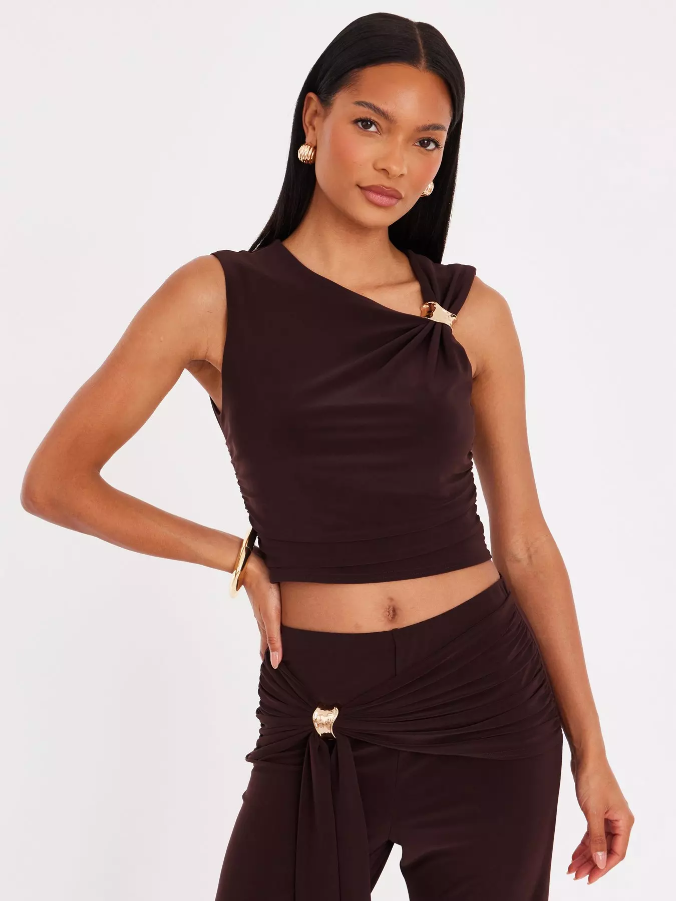 E.A.N: 5 0 6 3 3 3 1 3 7 9 4 7 9Quiz Brown Gold Trim Cropped Top